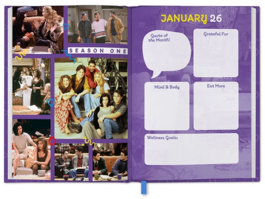 Oficiální produkt - exklusivní dárkový set s kalendářem a diářem s propiskou na rok 2026 s licencí a grafikou TV seriálu Friends - Přátelé.