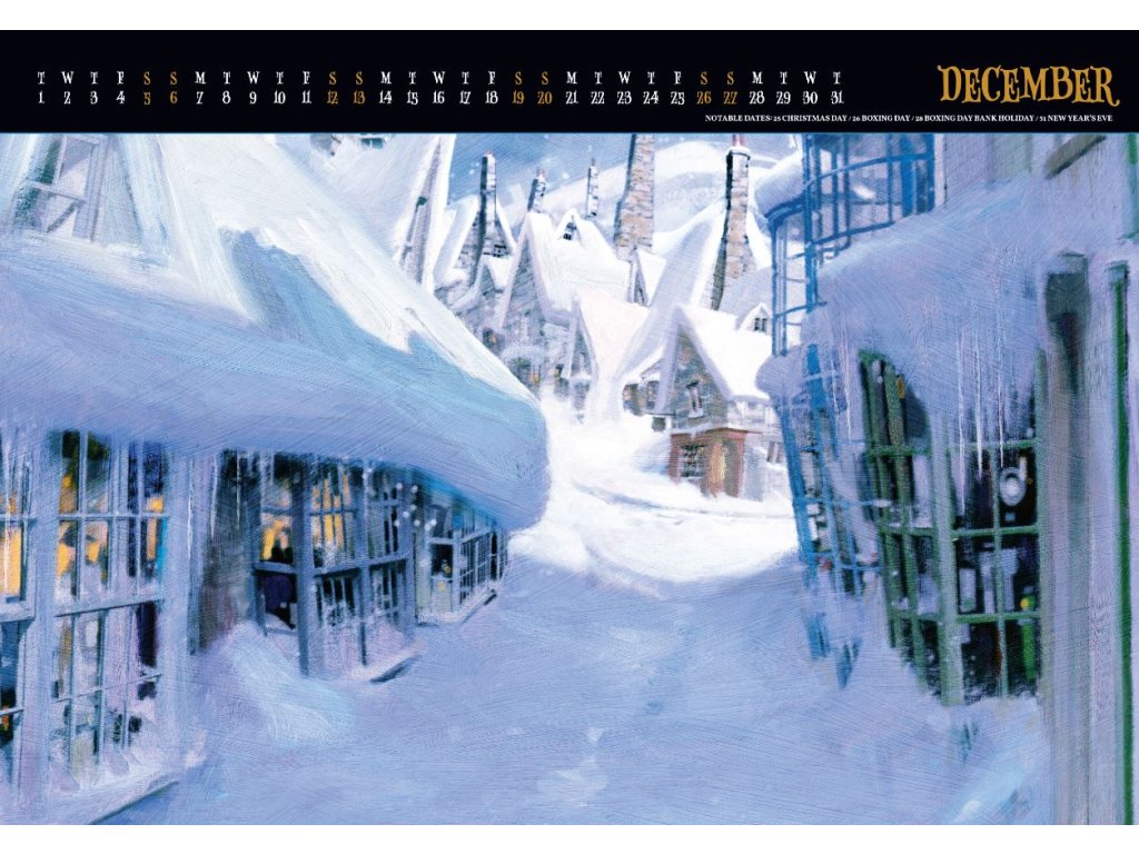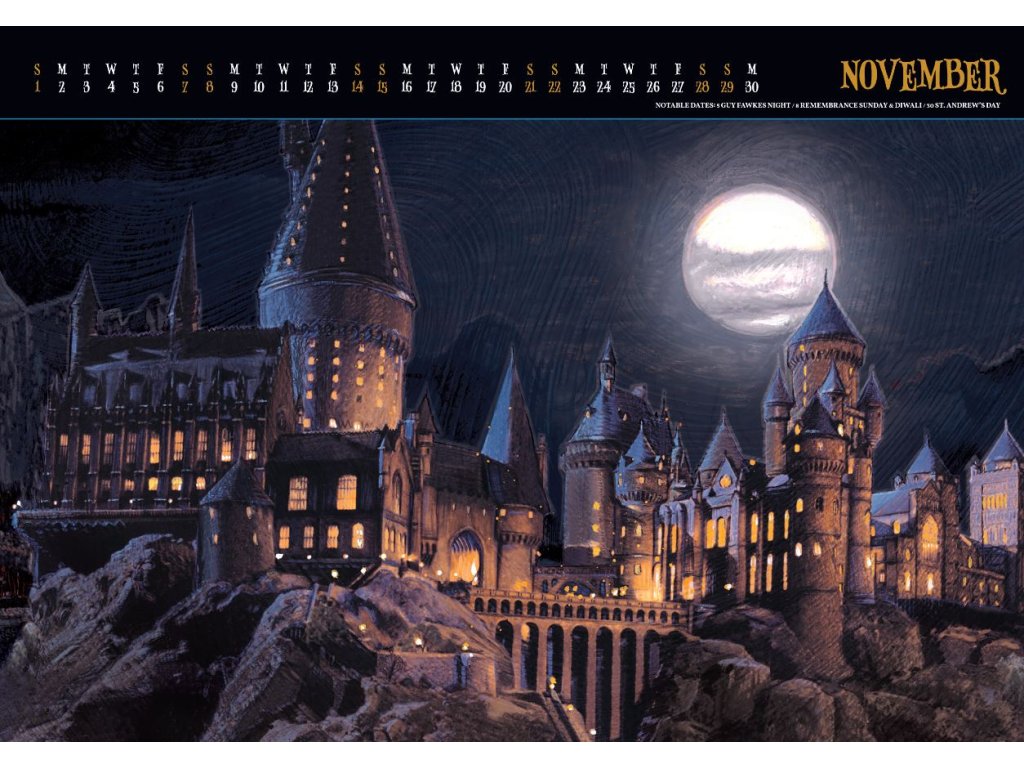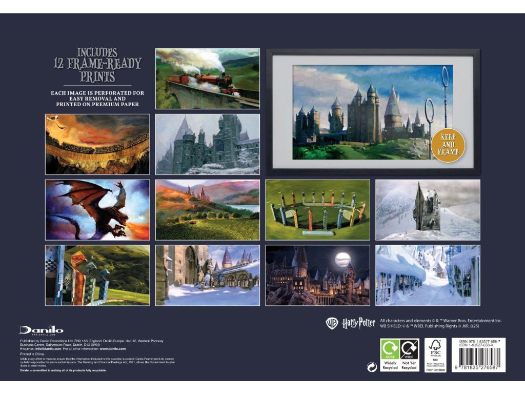 Exklusivní dvanáctiměsíční nástěnný kalendář A3 formátu (29,7 x 42 cm) s celkem 13 oficiálními plakátovými obrázky a ilustracemi knižní a filmové ságy Harry Potter.