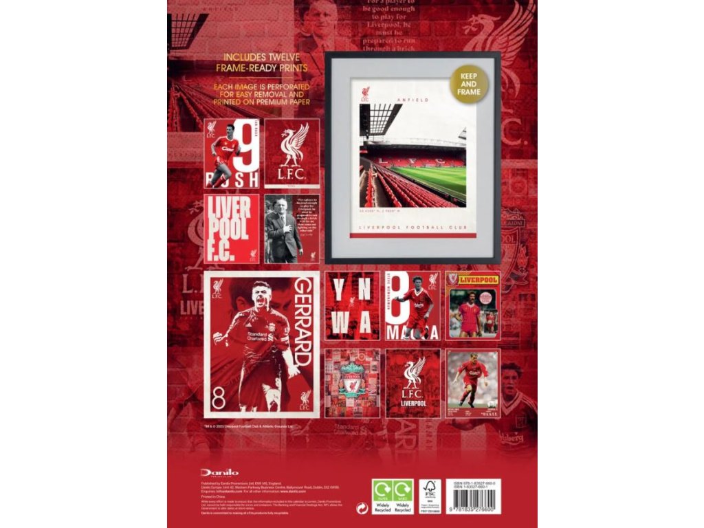 Exklusivní dvanáctiměsíční nástěnný kalendář A3 formátu (29,7 x 42 cm) s celkem 13 oficiálními plakátovými obrázky a grafikou britského fotbalového klubu FC Liverpool.