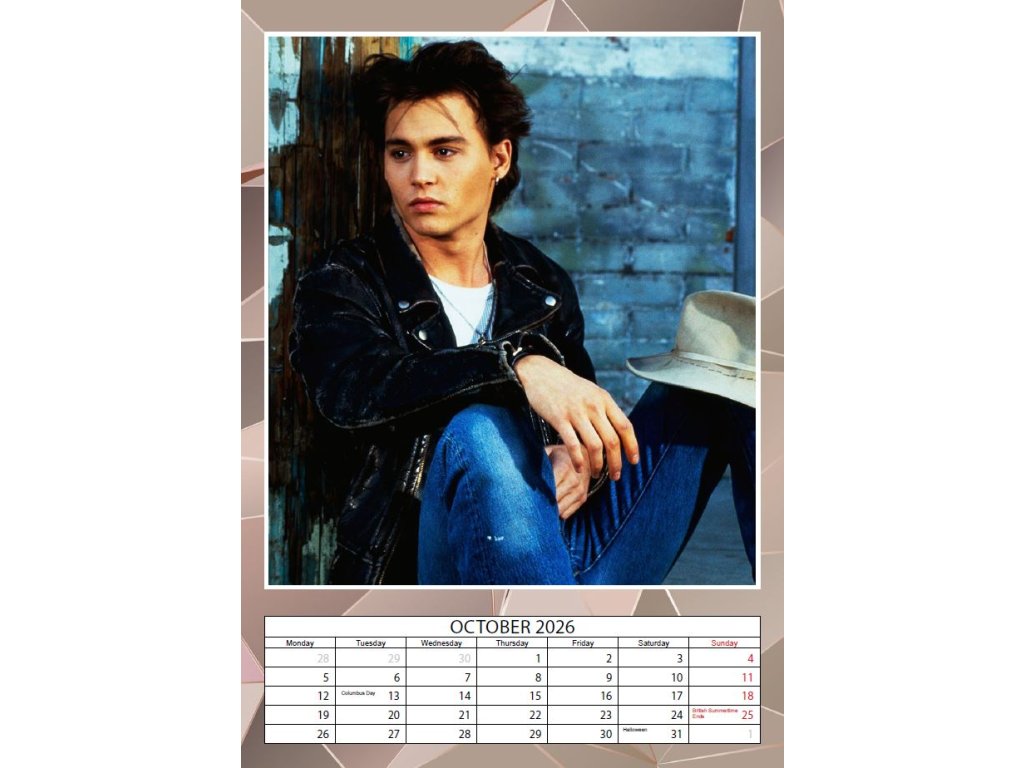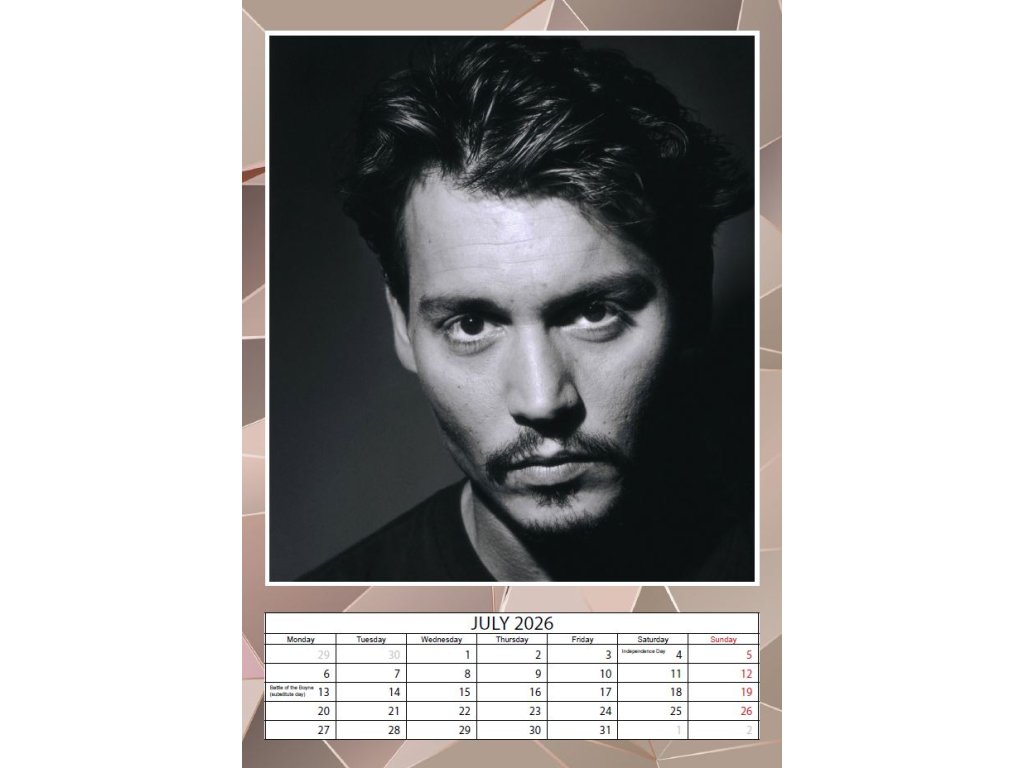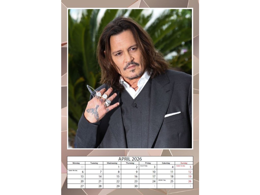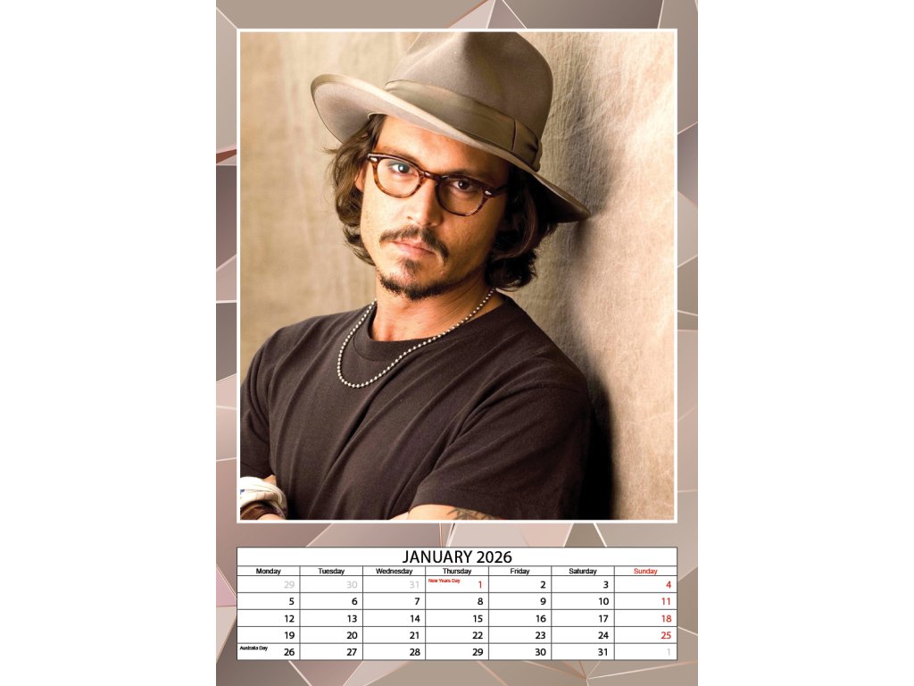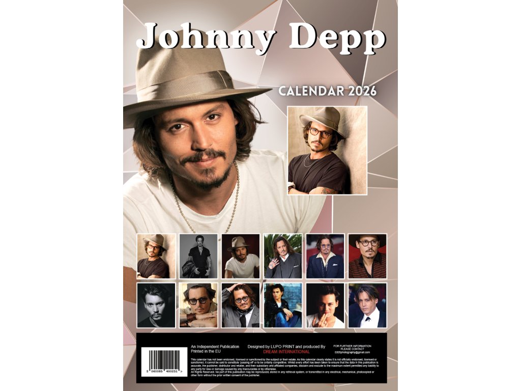 Oficiální produkt - nástěnný dvanáctiměsíční kalendář herce Johnny Depp na rok 2026.