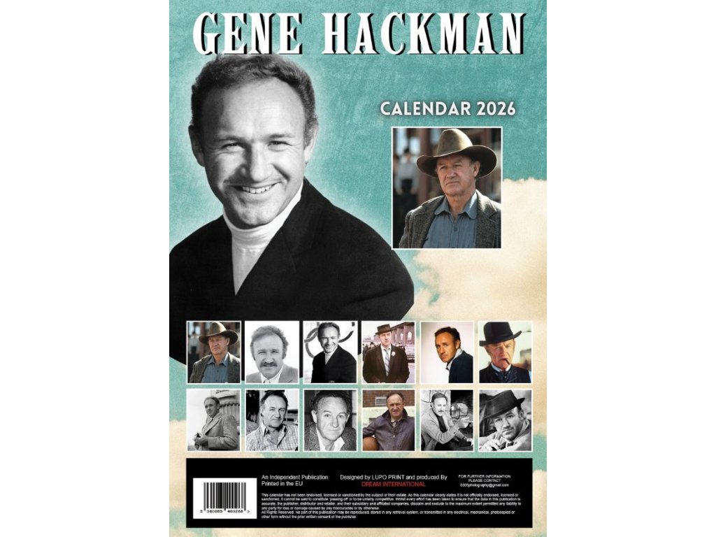 Oficiální produkt - exklusivní dvanáctiměsíční nástěnný kalendář na rok 2026 s fotografiemi populárního televizního herce Gene Hackman.