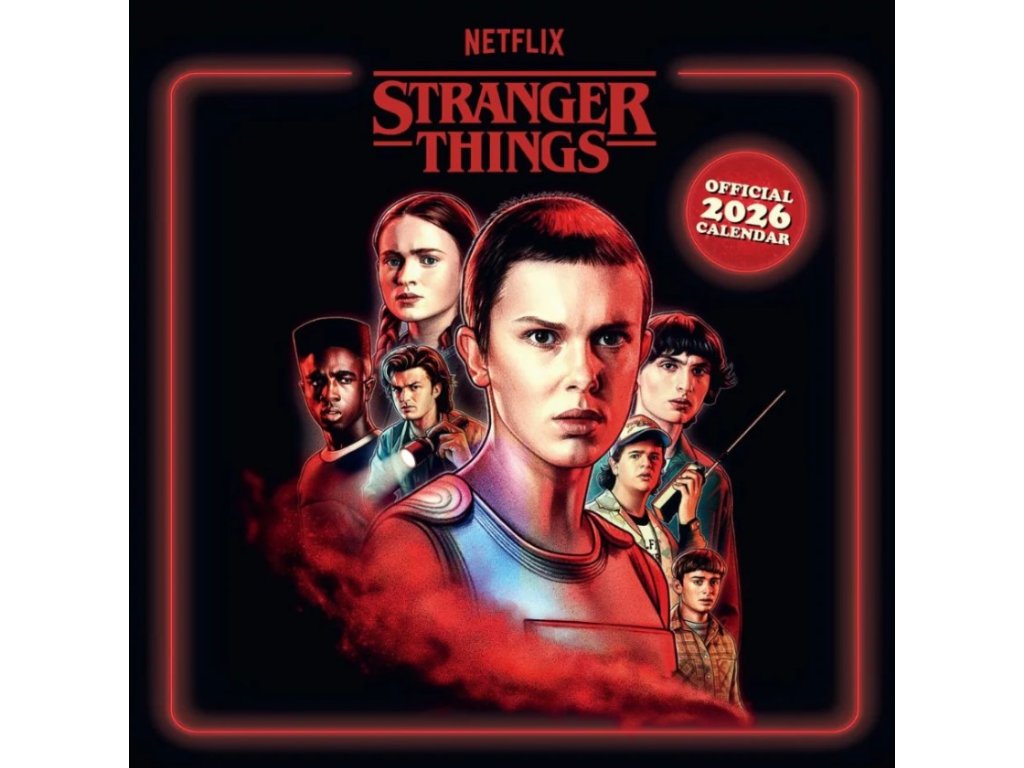 Oficiální produkt - dvanáctiměsíční nástěnný kalendář TV studia Netflix na rok 2026 s licencí televizního seriálu Stranger Things.