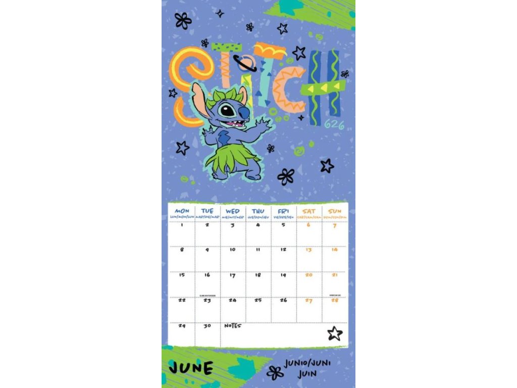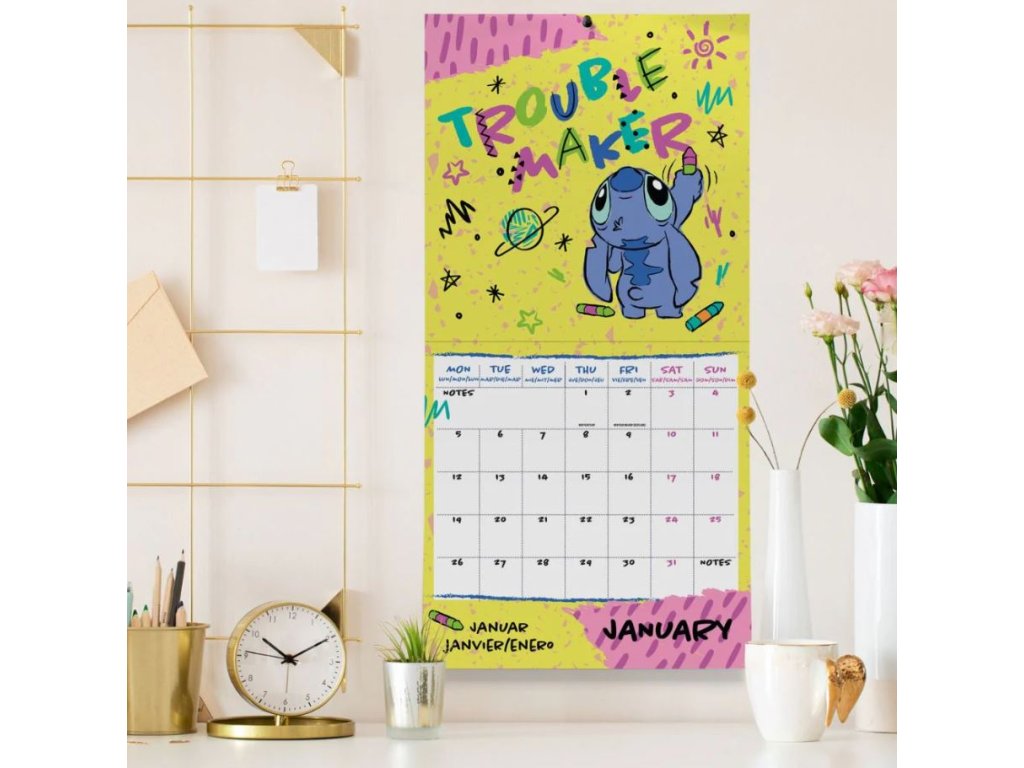 Oficiální produkt - kalendář na rok 2026 z katalogu výrobků s licencí a grafikou animované pohádky Lilo & Stitch od společnosti Disney.