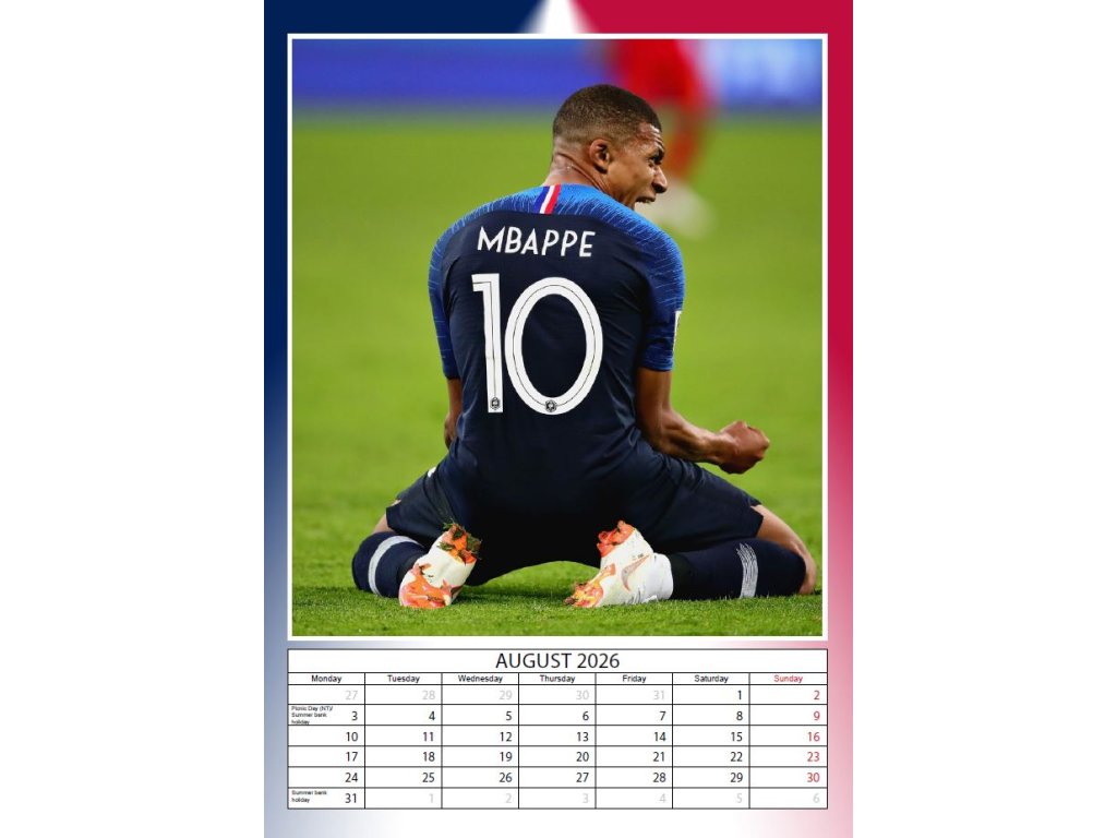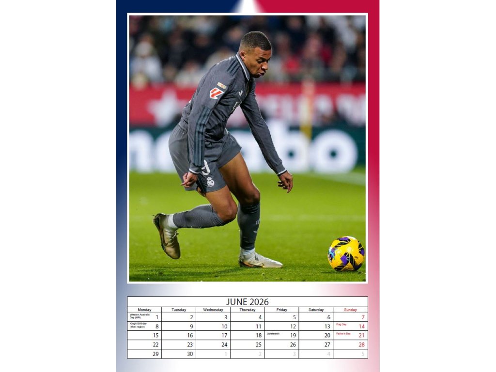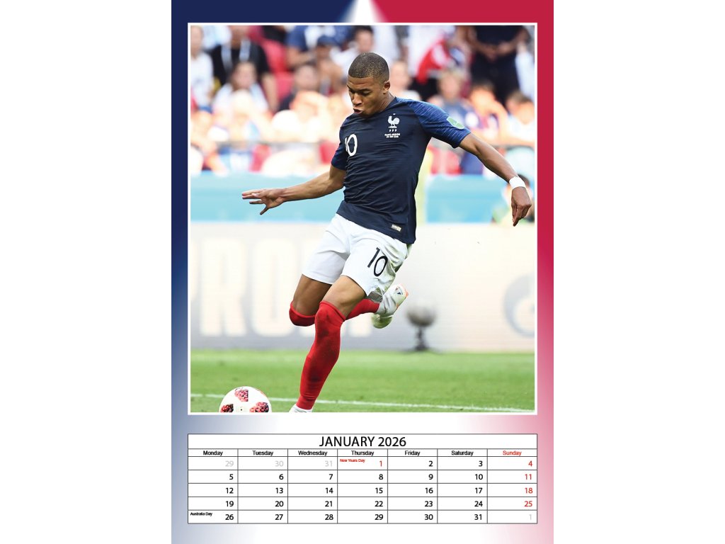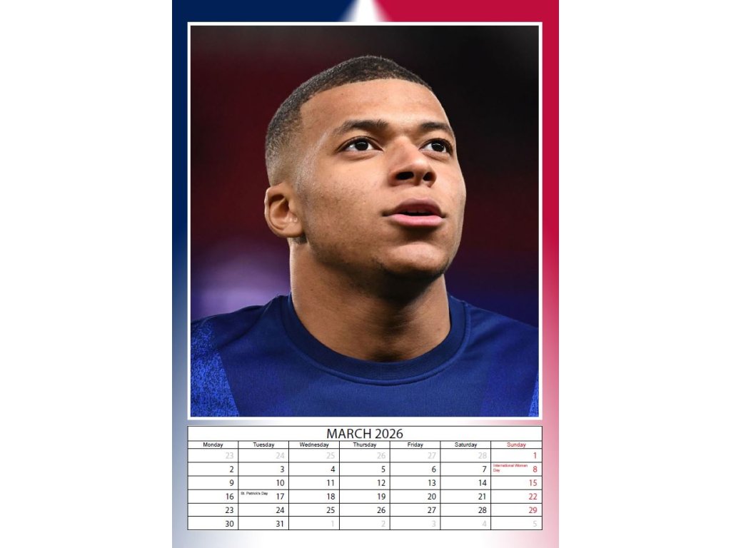 KALENDÁŘ 2026|FOTBAL MBAPPÉ (29,7 x 42 cm) A3