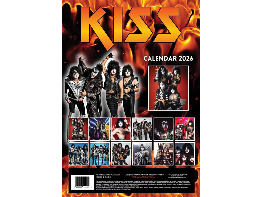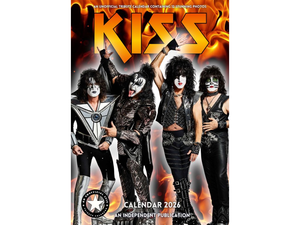 Oficiální produkt - nástěnný dvanáctiměsíční kalendář hudební skupiny Kiss na rok 2026.