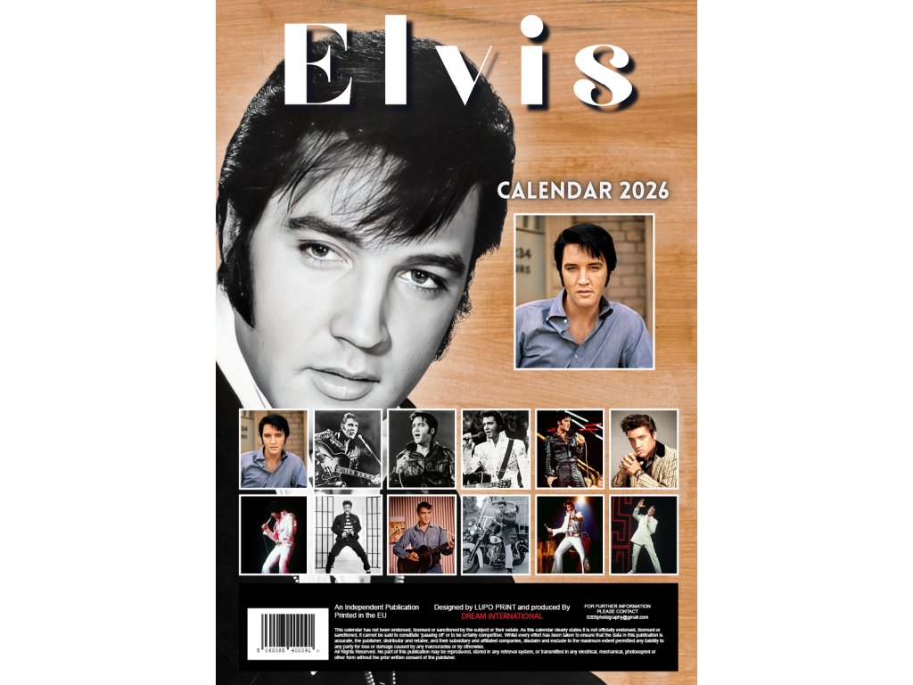 Oficiální produkt - nástěnný dvanáctiměsíční kalendář zpěvákem Elvis Presley na rok 2026.