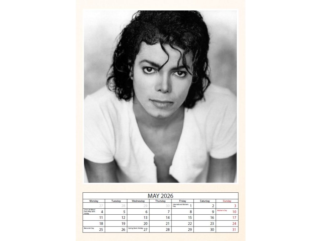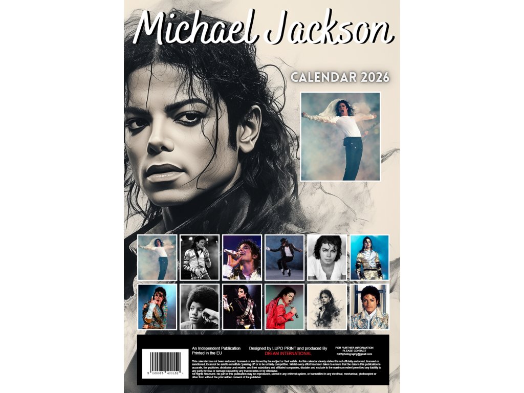 Oficiální produkt - nástěnný dvanáctiměsíční kalendář zpěváka Michael Jackson na rok 2026.