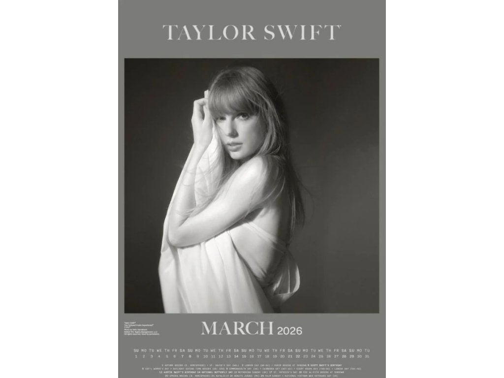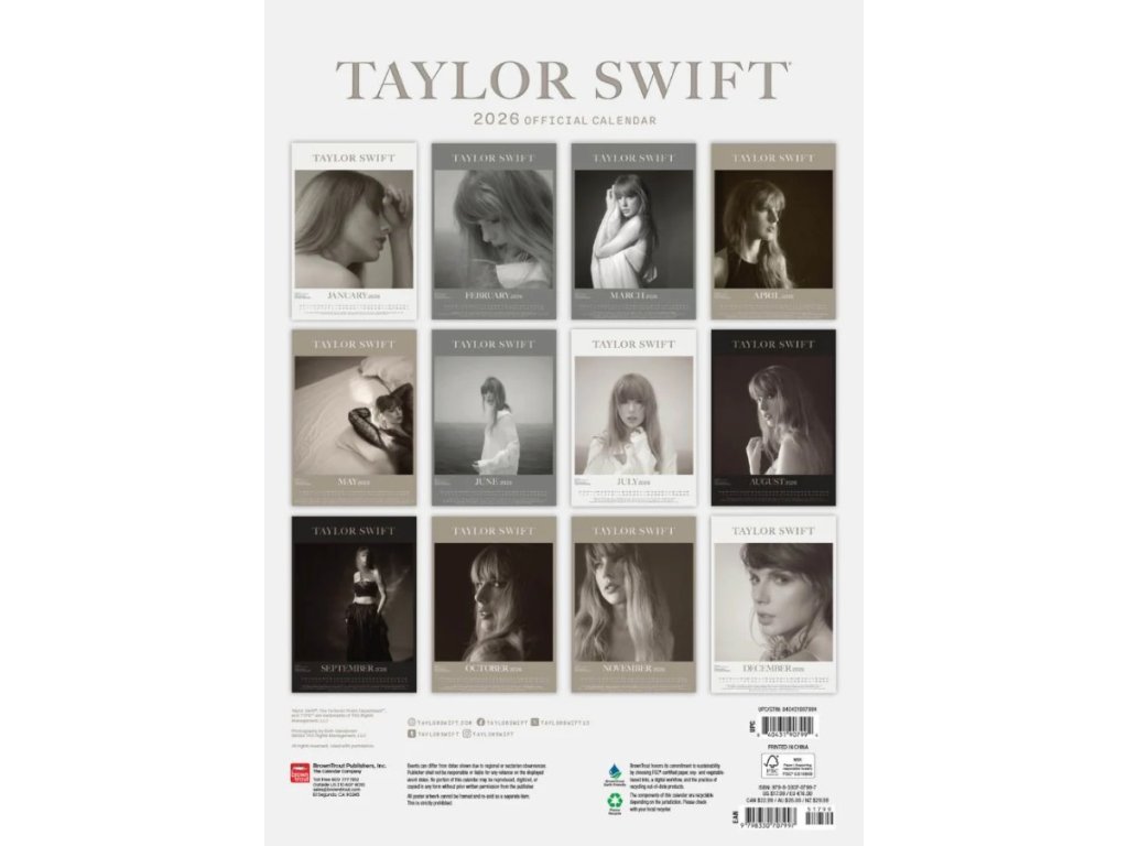 Oficiální produkt - dvanáctiměsíční nástěnný kalendář na rok 2026 s licencí americké zpěvačky Taylor Swift.