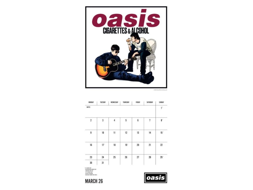 Oficiální nástěnný dvanáctiměsíční kalendář populární hudební skupiny Oasis.