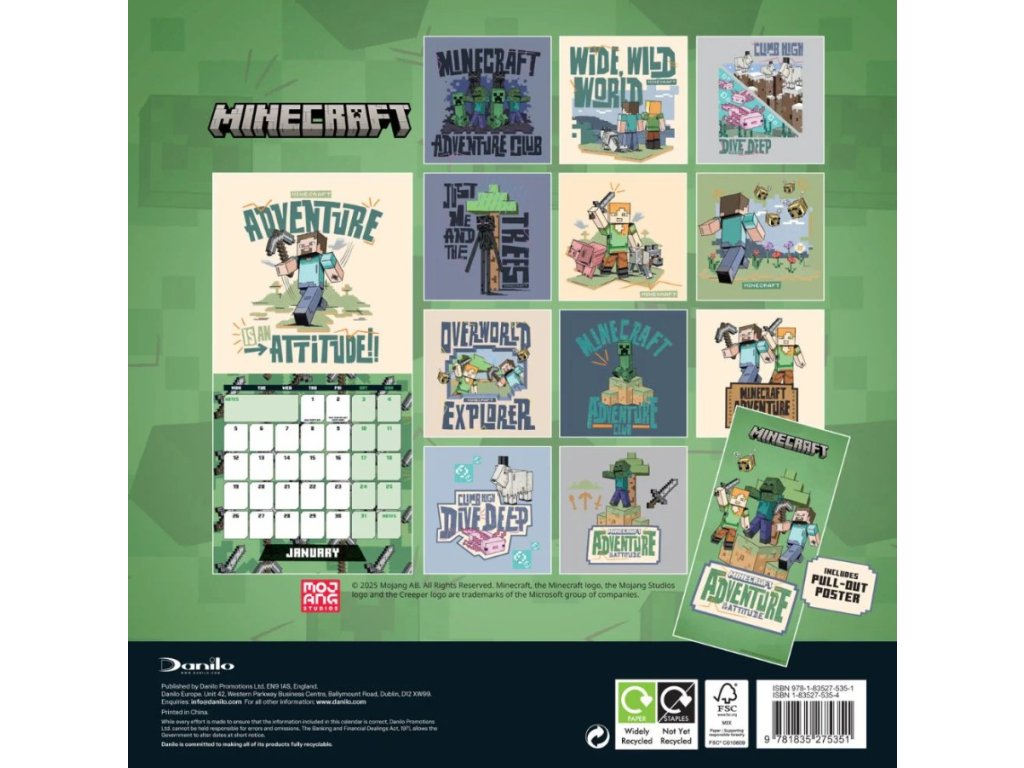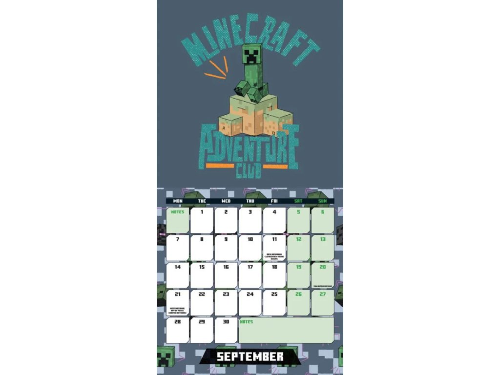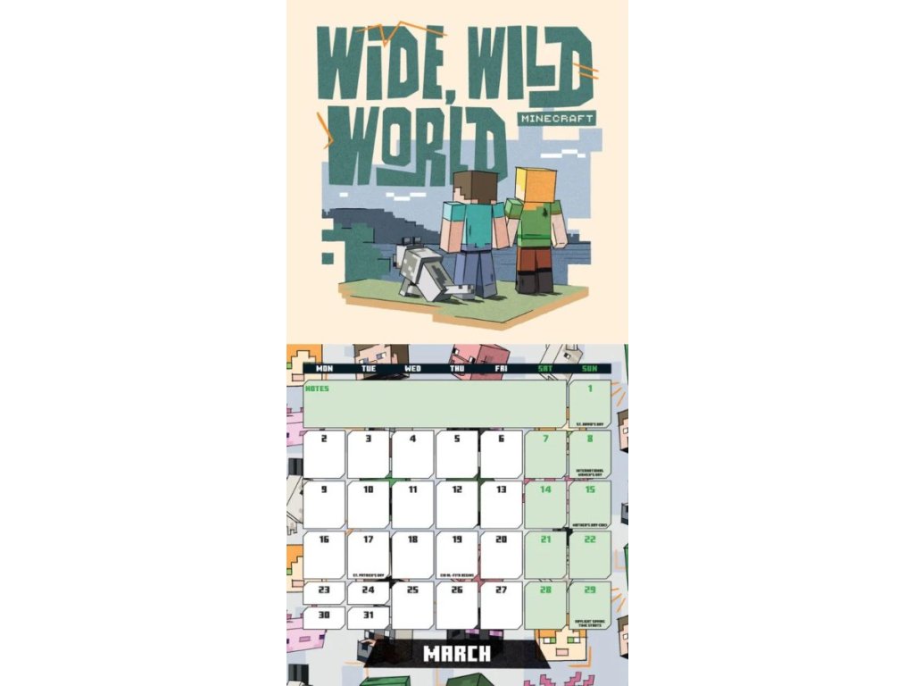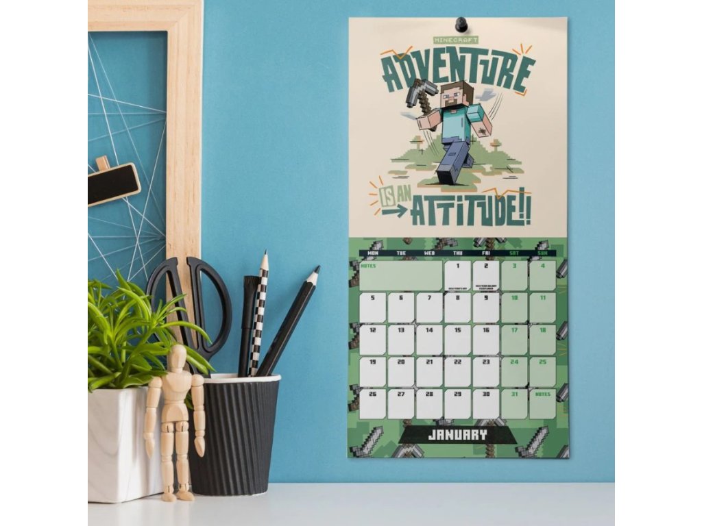 Oficiální produkt - dvanáctiměsíční nástěnný mini kalendář na rok 2026 s licencí PC hry Minecraft.