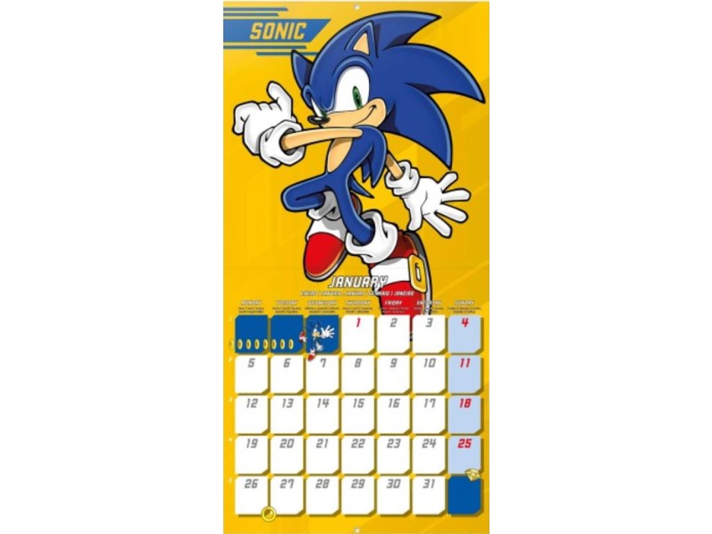 Dvanáctiměsíční nástěnný kalendář čtvercového square formátu (30 x 30 cm) s celkem 13 fotografiemi a obrázky z videohry SEGA Sonic.