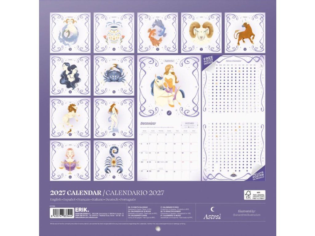 Oficiální produkt - dvanáctiměsíční nástěnný kalendář na rok 2027 s licencí a grafikou astrálních znamení.