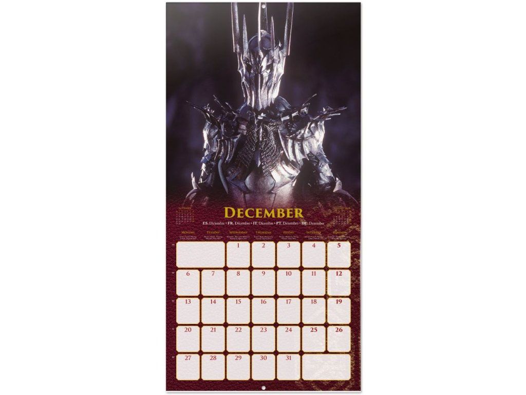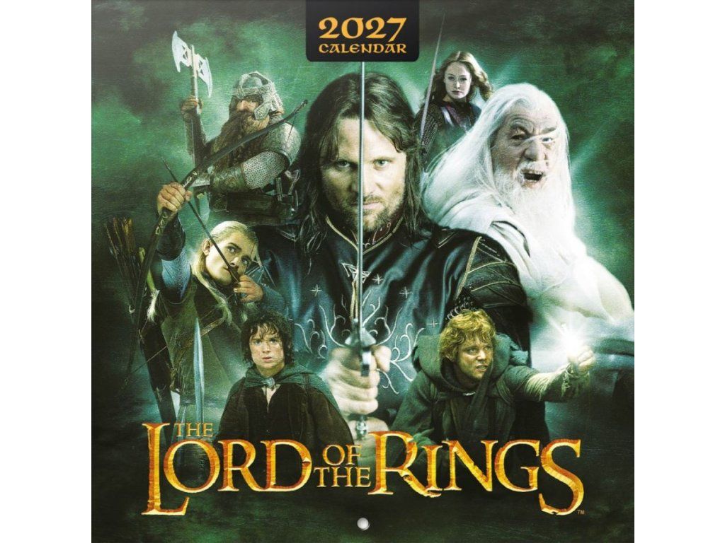 Oficiální produkt - nástěnný kalendář na 12 měsíců roku 2027 s licencí filmové ságy Pán Prstenů.