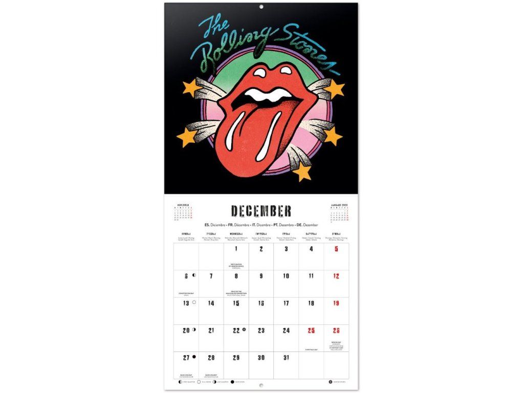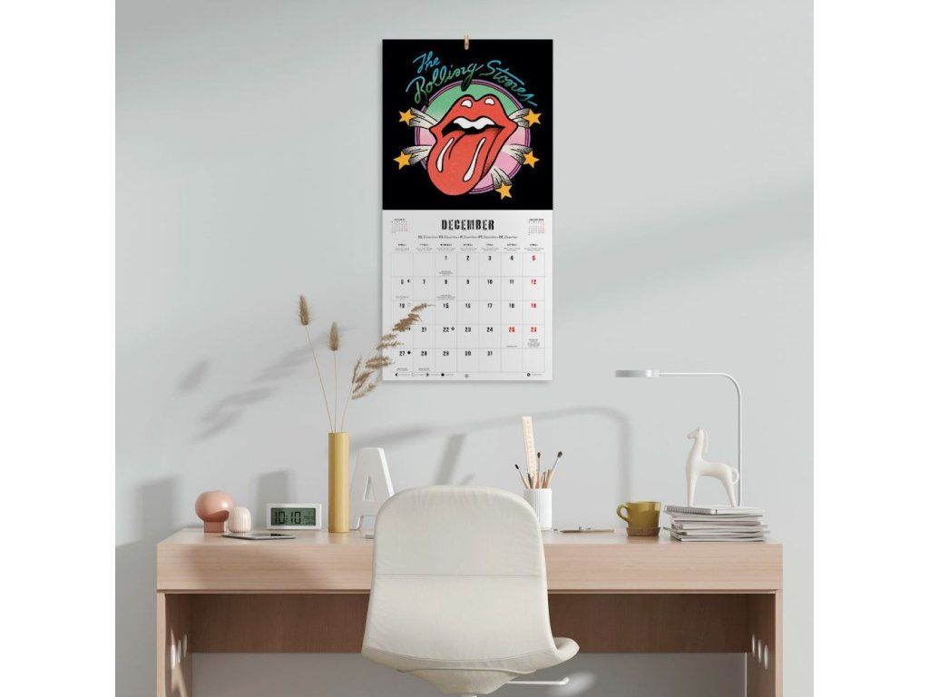 Oficiální nástěnný kalendář na rok 2027 s licencí rockové skupiny The Rolling Stones.