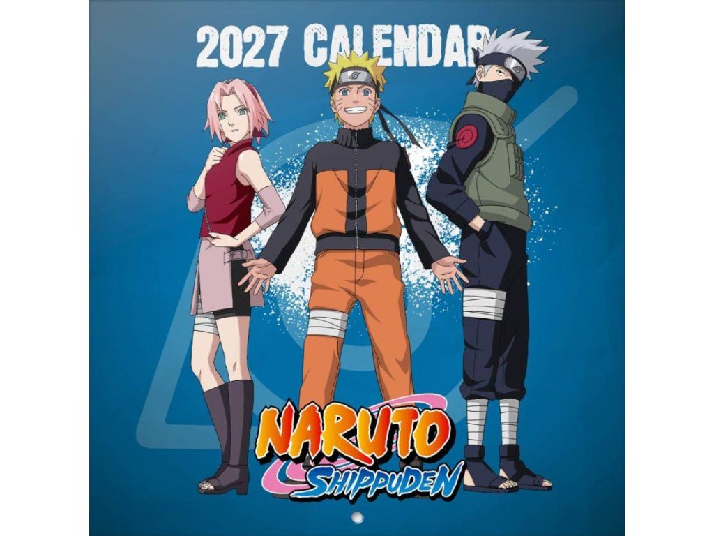 Oficiální nástěnný kalendář na rok 2027 z katalogu výrobků s grafikou a licencí japonské mangy Naruto.