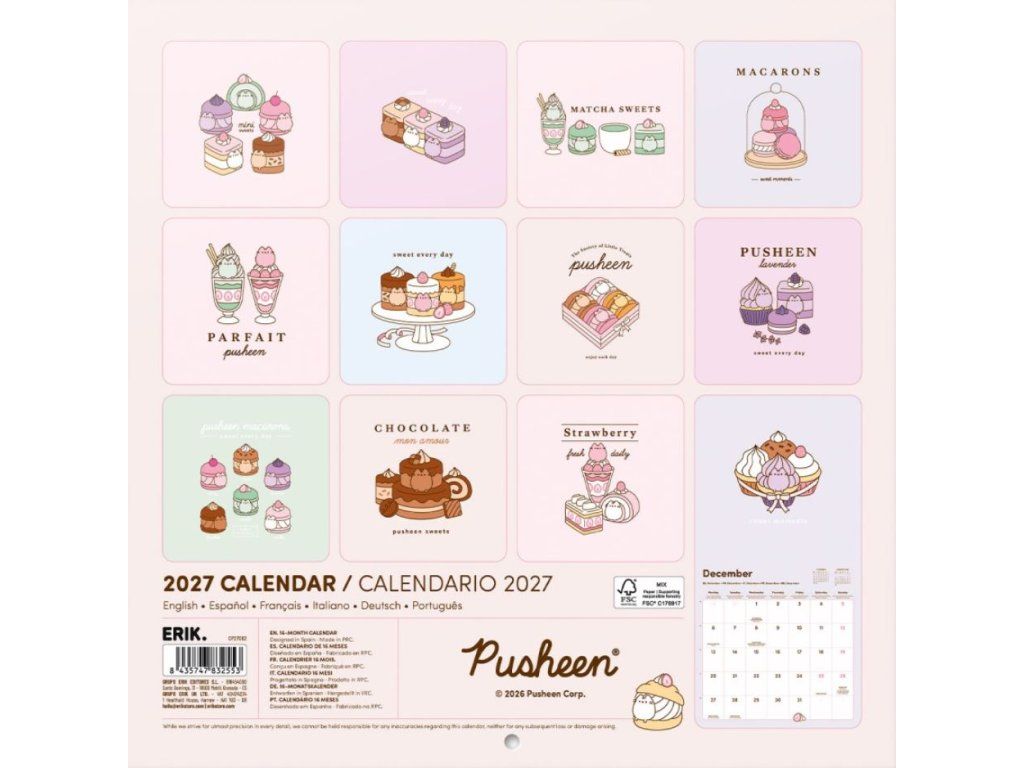 Oficiální produkt - nástěnný kalendář na 16 měsíců od září 2026 do konce roku 2027 s licencí animované kočky Pusheen.