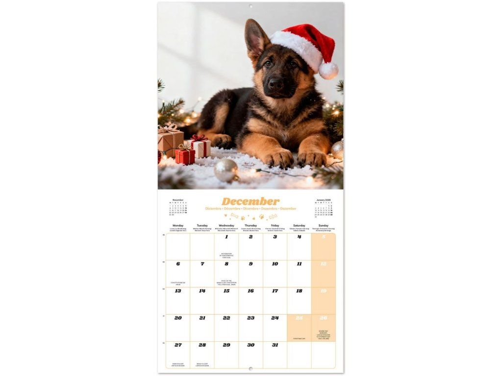 Umělecký kalendář s fotografiemi štěňat na 12 měsíců s platností od ledna 2027 do konce roku 2027.