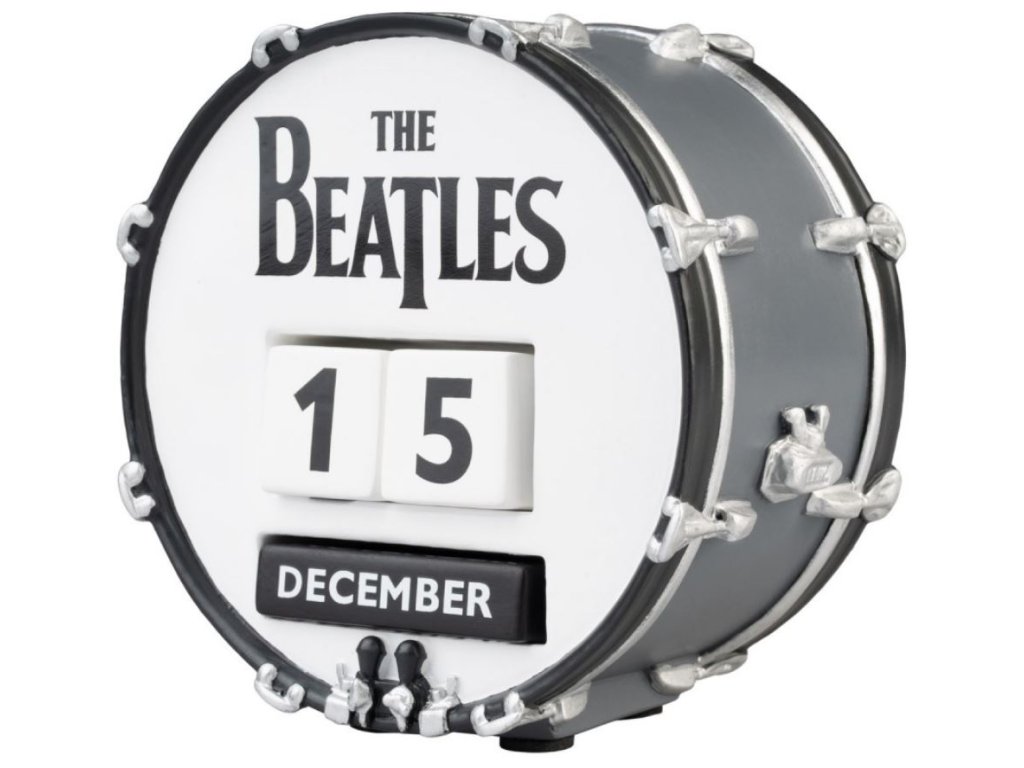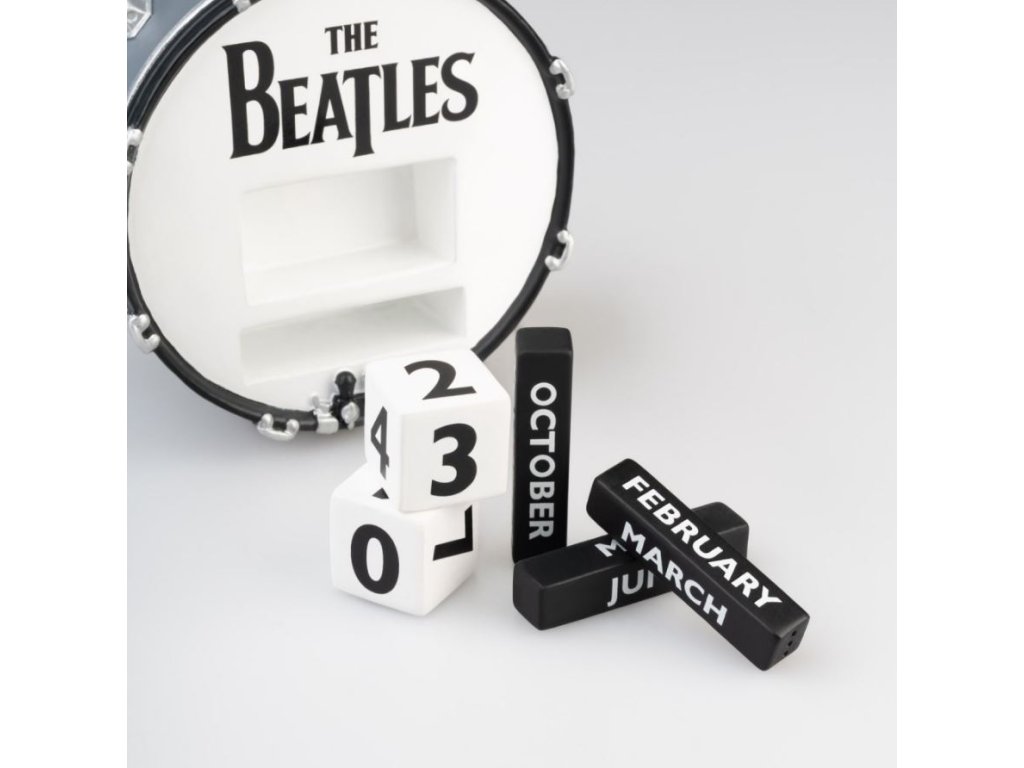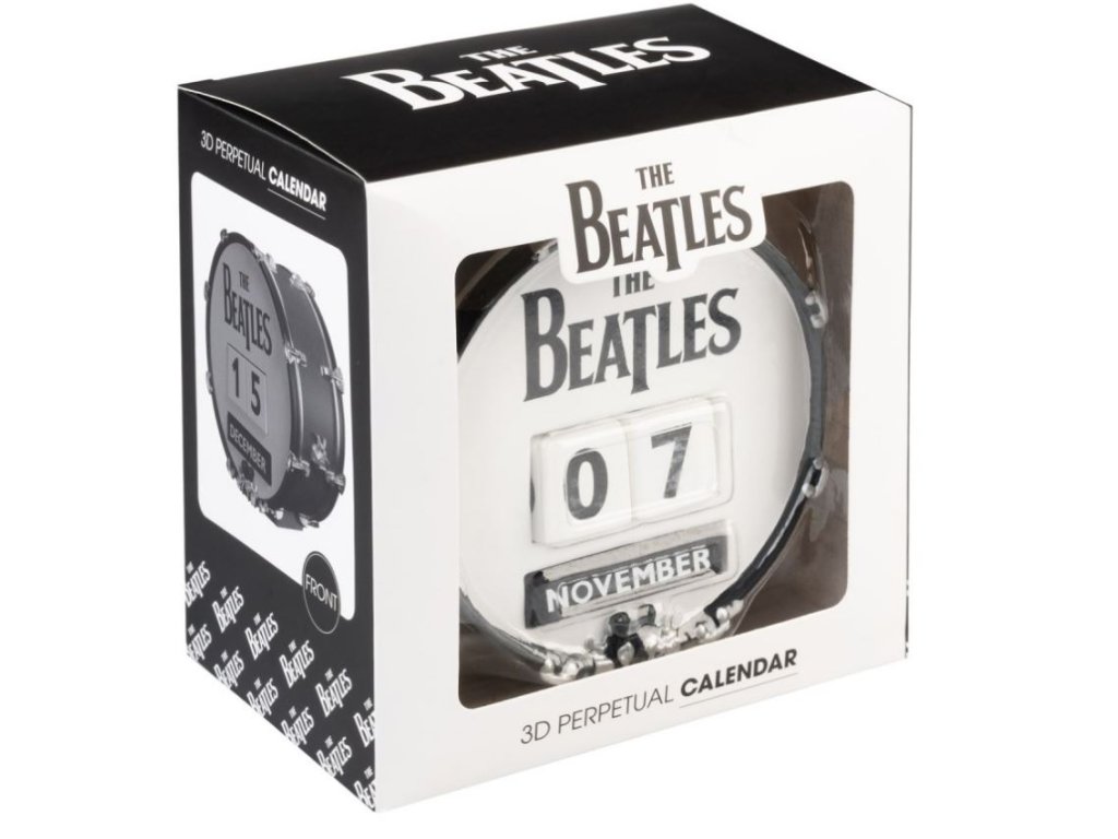 Věčný 3D kalendář vyvedený s grafikou bubnu s logem kapely The Beatles. Platnost kalendáře je neomezená a věčná, protože stačí vyndat kostky s čísly, které značí datum a názvy měsíců a jednoduše otočit na jiné datum a měsíc stejného roku a zpět vložit. Tento kalendář už nebudete muset každý rok vyměňovat za jiný. Kalendář je proto vhodným dárkem pro každého menšího i většího fanouška hudební skupiny The Beatles.
