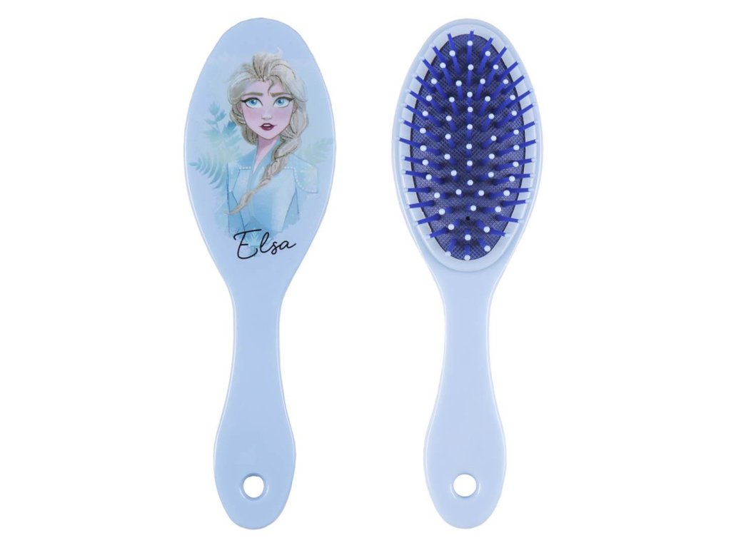 Modrý kartáč na vlasy s grafikou královny Elsy z pohádky Frozen. Kartáč je vhodný pro všechny menší i větší princezny.
