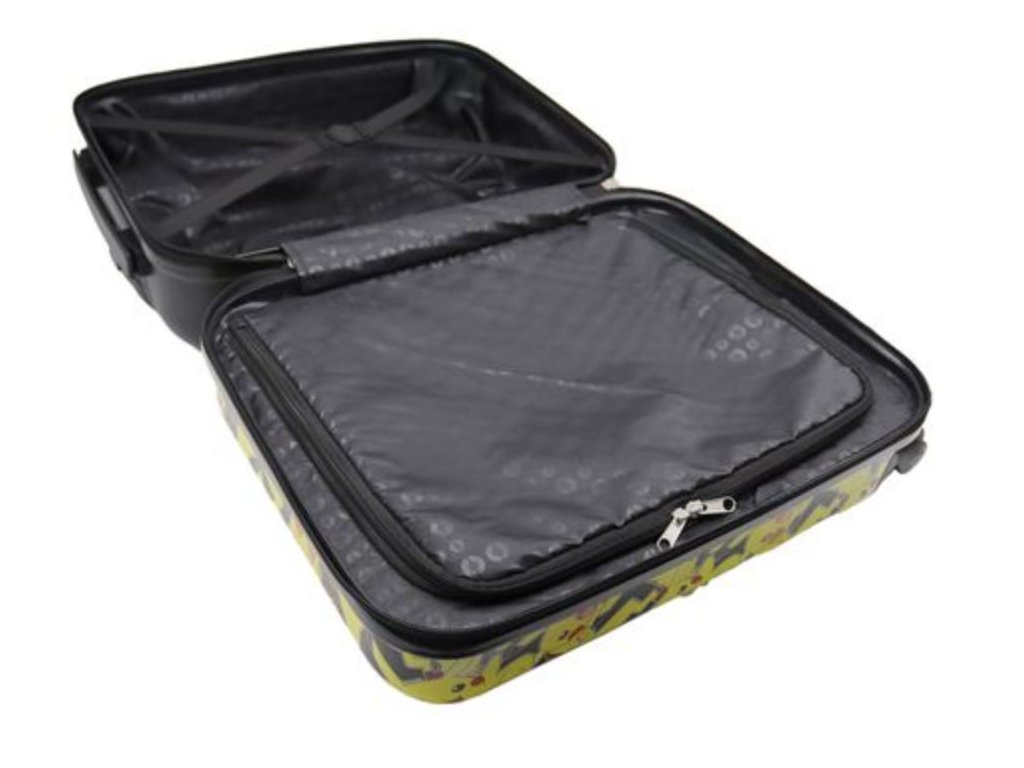 Praktický cestovní kufr na kolečkách v černé barvě vyvedený s grafikou pokémona Pikachu.