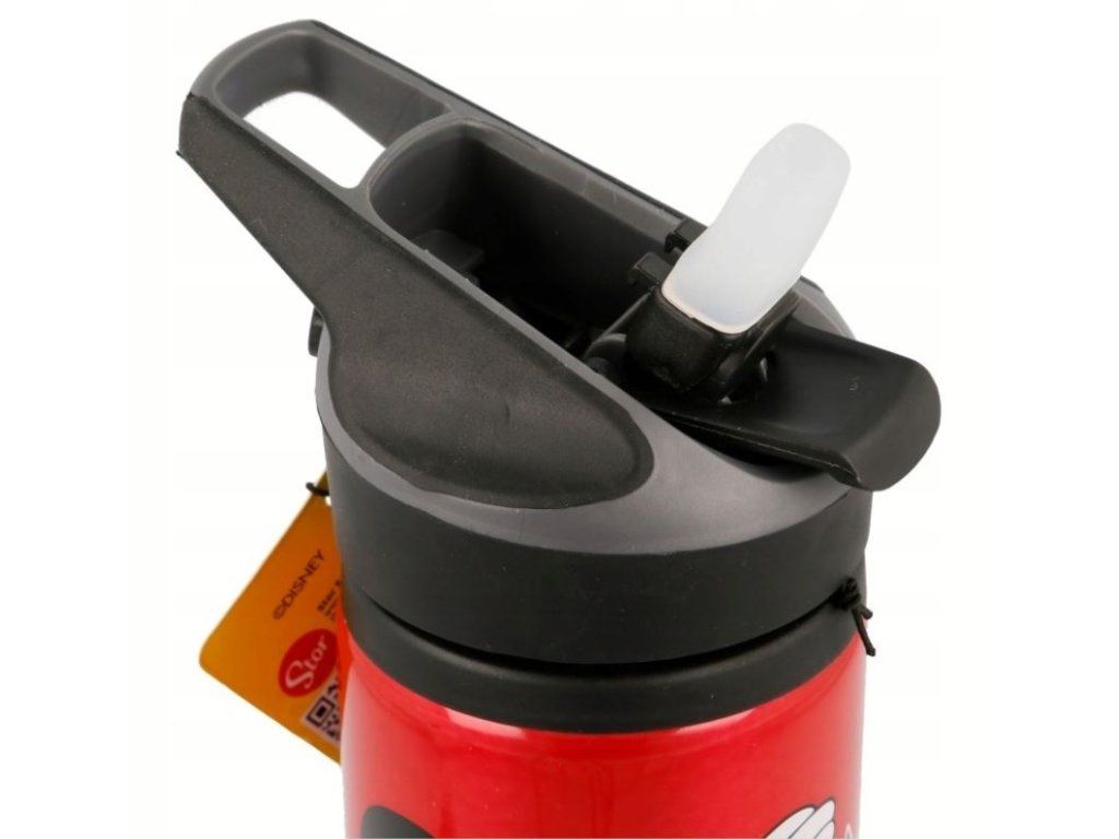 Láhev na pití vyvedená v červené barvě a černými detaily. Láhev má vyobrazenou postavičku Mickey Mouse s textem. Součásti láhve je i brčko s náustkem.
