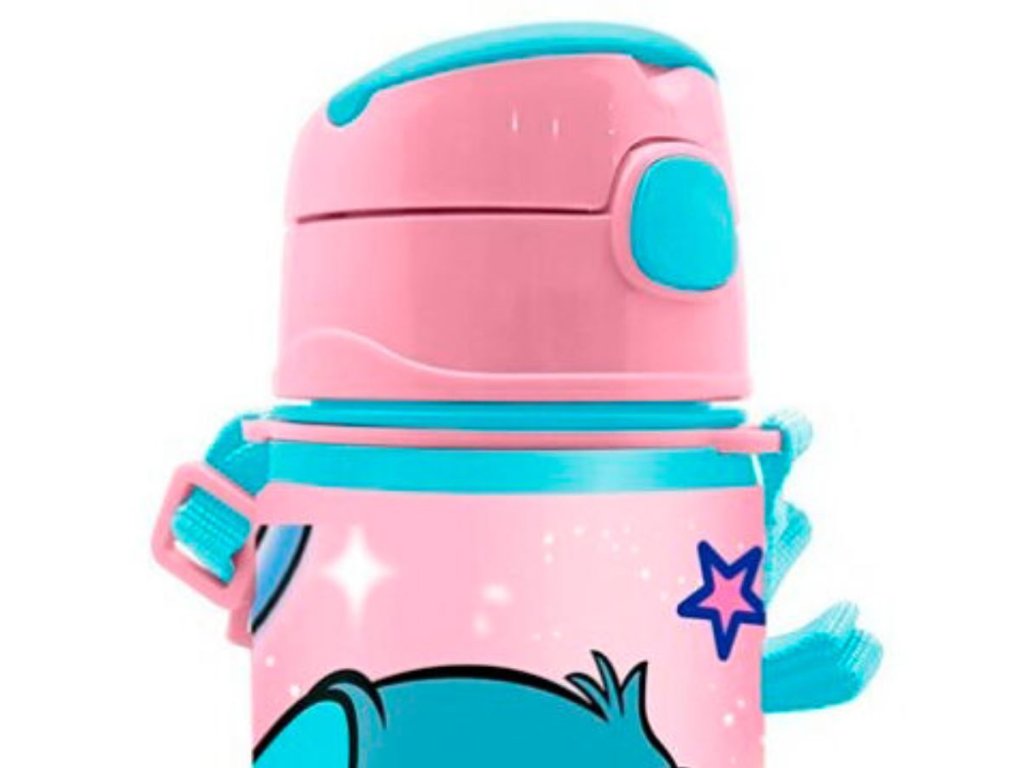 Designová láhev na pití s grafikou roztomilého Stitche. Plastový uzávěr je vybaven automatickým tlačítkem, které usnadňuje otevírání a pítkem pro pohodlné napití. Láhev obsahuje i nastavitelné poutko s jmenovkou pro snadné nošení, jak v ruce, tak na krku. Hliníková konstrukce činí tuto láhev velmi lehkou a zároveň odolnou vůči nárazům a poškrábání. Materiál láhve je bez toxinů a BPA, což zajišťuje bezpečné použití a ochranu zdraví dětí. S kapacitou 600 ml je láhev vhodná do školy, kroužků, či na odpolední venkovní aktivity.
