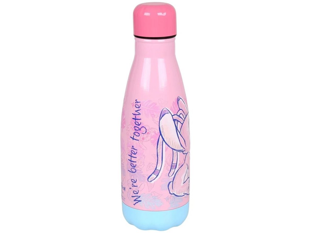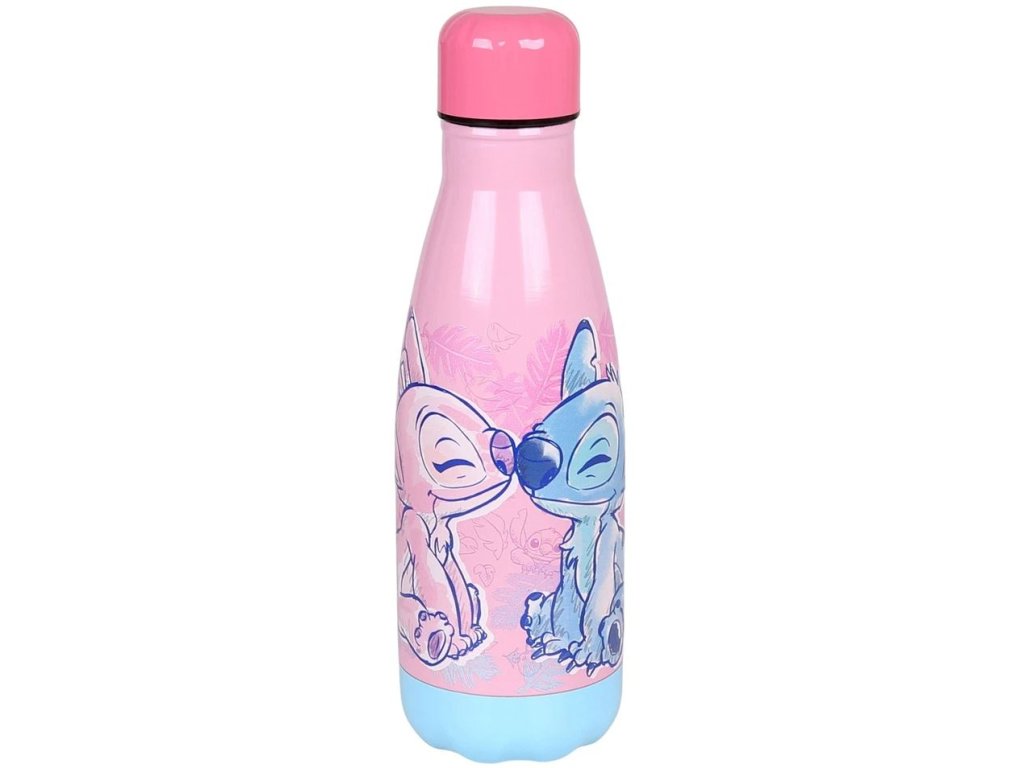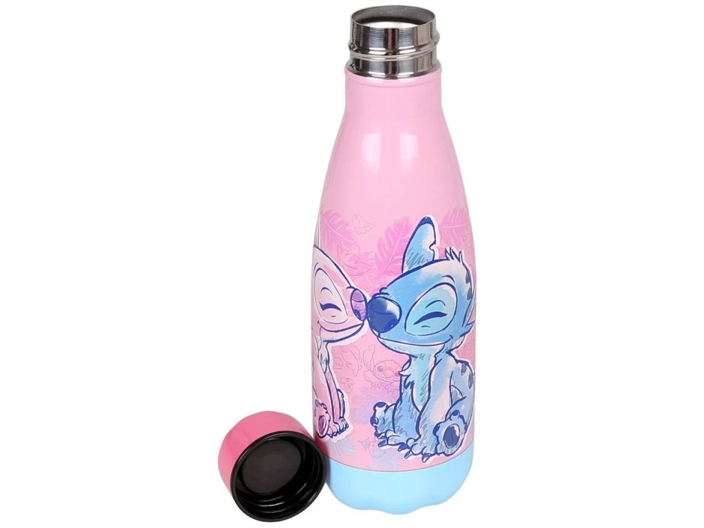 Praktická a stylová láhev na nápoje pro fanoušky roztomilého mimozemšťana Stitche a Angel z filmu Lilo a Stitch. S objemem 500 ml je ideální jak na výlety, tak procházky nebo každodenní používání ve škole, či v práci. Láhev je vyrobena z lehké kvalitní nerezové oceli, což zaručuje odolnost a bezpečné používání. Jedinečný a originální design s obrázkem zamilovaného Stitche a Angel dělá z láhve zároveň módní a stylový doplňek.