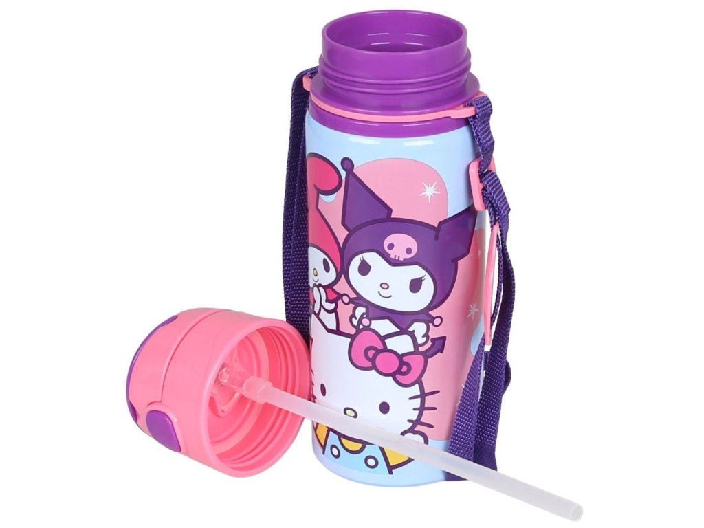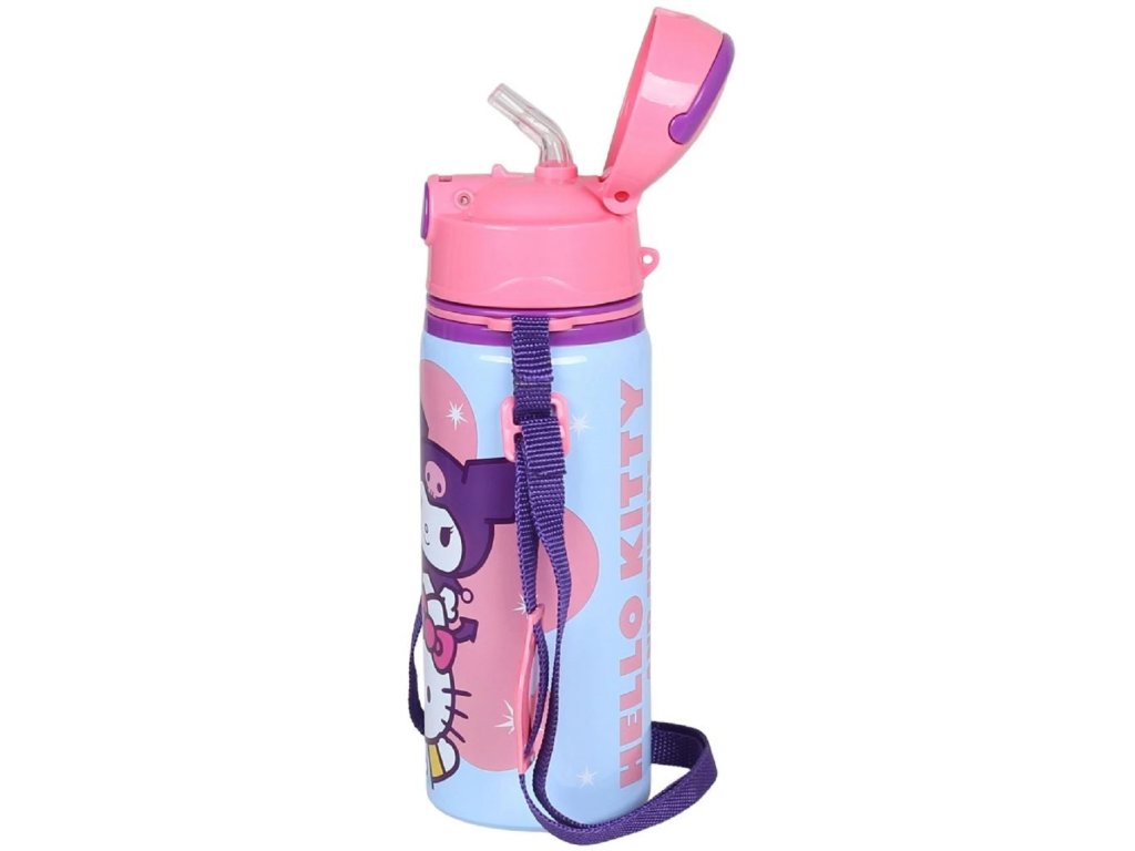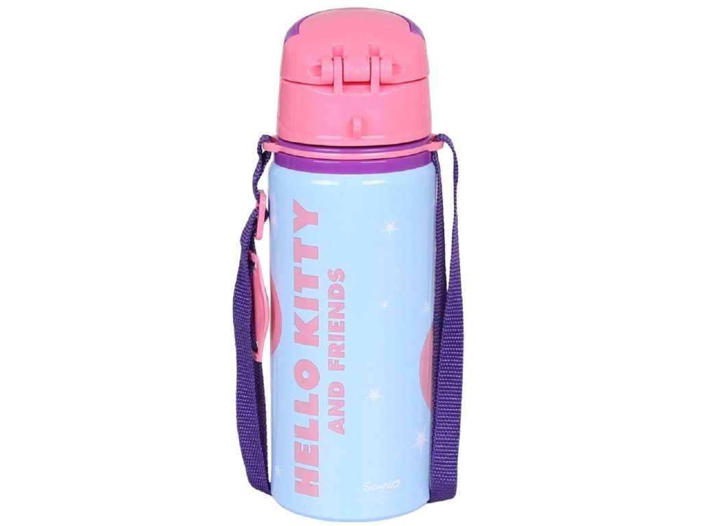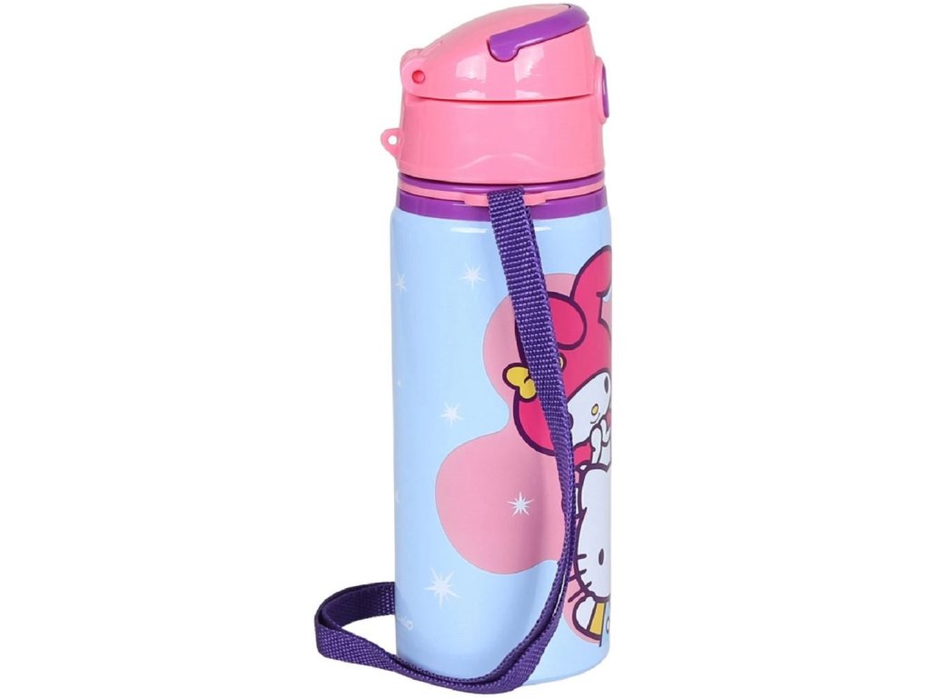 Designová láhev na pití s grafikou kočky Hello Kitty. Láhev je zavěšená na nastavitelném popruhu s jmenovkou a obsahuje uzavíratelné víčko z tvrdého plastu s plastovým pítkem. Hliníková konstrukce činí tuto láhev velmi lehkou a zároveň odolnou vůči nárazům a poškrábání, což z ní činí spolehlivého společníka pro aktivní dětské aktivity. Materiál láhve je 100% bez toxinů a BPA, což zajišťuje bezpečné použití a ochranu zdraví dětí. S kapacitou 600 ml láhev poskytuje dostatek místa pro oblíbené nápoje dětí, čímž zajišťuje hydrataci po celý den.