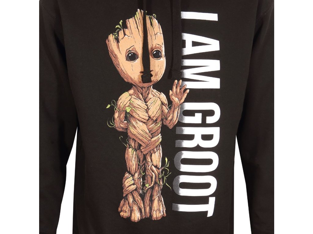 Černá mikina s kapucí s grafikou populárního stromečku Groota a nápisem: ,,I am Groot''. Mikina je vhodným doplňkem pro každého menšího i většího fanouška filmové ságy Strážci Galaxie.