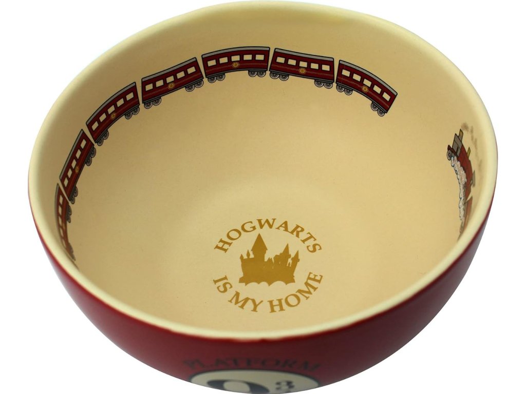 Keramická miska s motivem Bradavického expresu je dokonalým doplňkem pro každé kouzelnické snídaně nebo svačiny. Vnější bordó barva s erbem Bradavic dodává misku elegantní nádech magie, zatímco vnitřní ilustrace vlaku přináší kouzlo dobrodružství přímo na tvůj stůl. Skvělá volba pro fanoušky Harryho Pottera, kteří chtějí mít kousek Bradavic doma.