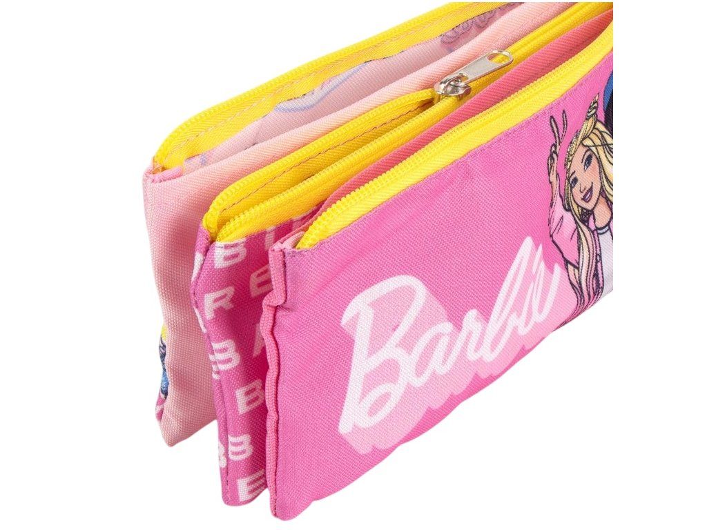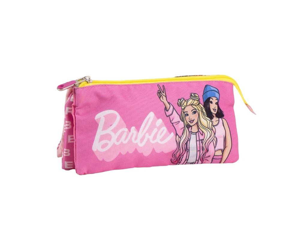 Dopřejte své malé školačce pořádnou dávku stylu s tímto růžovým penálem v designu ikonických panenek Barbie od Mattela. Díky třem samostatným kapsám na zip už nebude hledání oblíbené pastelky žádný problém. Penál je vyroben z odolného polyesteru, takže zvládne každodenní školní dobrodružství. Skvěle poslouží nejen na psací potřeby, ale i jako praktická kosmetická taštička na drobnosti. Ideální dárek pro každou fanynku světa Barbie.