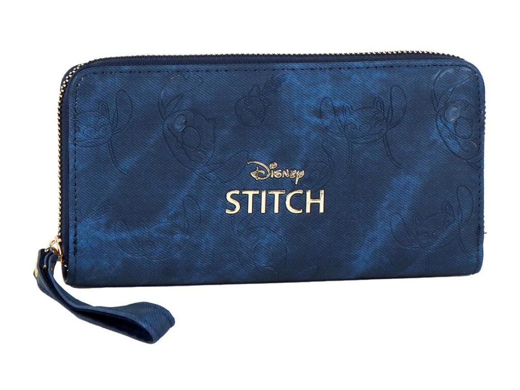 Tmavě modrá peněženka vyvedená s grafickými ikonami Stitche z pohádky Lilo & Stitch od společnosti Disney. Peněženka má spoustu místa na všechny vaše karty, hotovost i drobné a je na zapínání na zip.