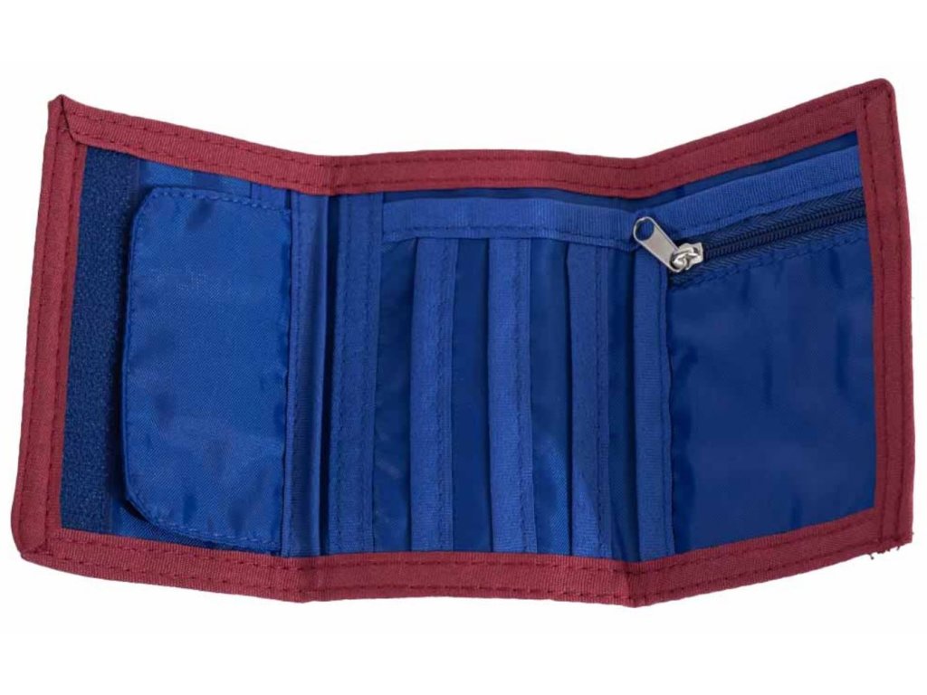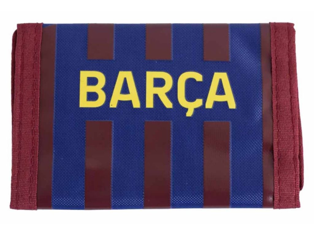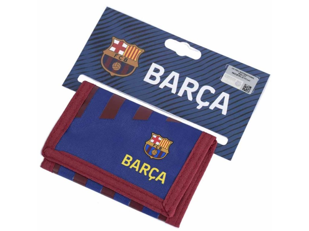 Peněženka s proužkovým designem, která obsahuje plnobarevný znak klubu FC Barcelona. Má vnitřní kapsu na zip a 7 dalších oddělených přihrádek. Vyrobena z polyesteru, který se snadno čistí. Oficiálně licencovaný produkt. Rozměry přibližně 12 × 8 cm v zavřeném stavu, váha 44 g. Dodává se se zavěšovací visačkou.