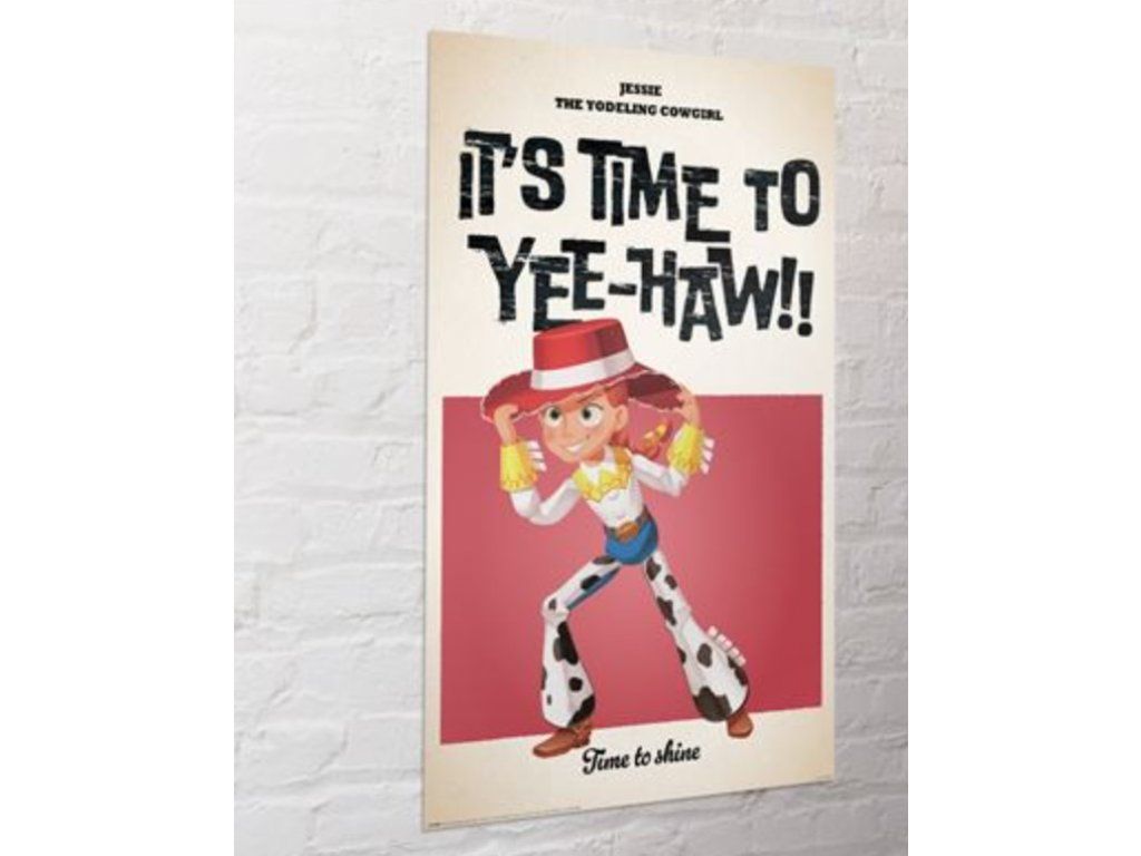 Plakát s motivem Jessie z kultovní série Toy Story (Příběh hraček) od Disney Pixar okamžitě rozzáří každý dětský pokoj nebo herní koutek. S jejím typickým širokým úsměvem a ikonickým červeným kloboukem je Jessie připravena na další dobrodružství - a tentokrát přímo u vás na zdi.