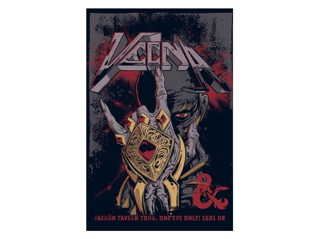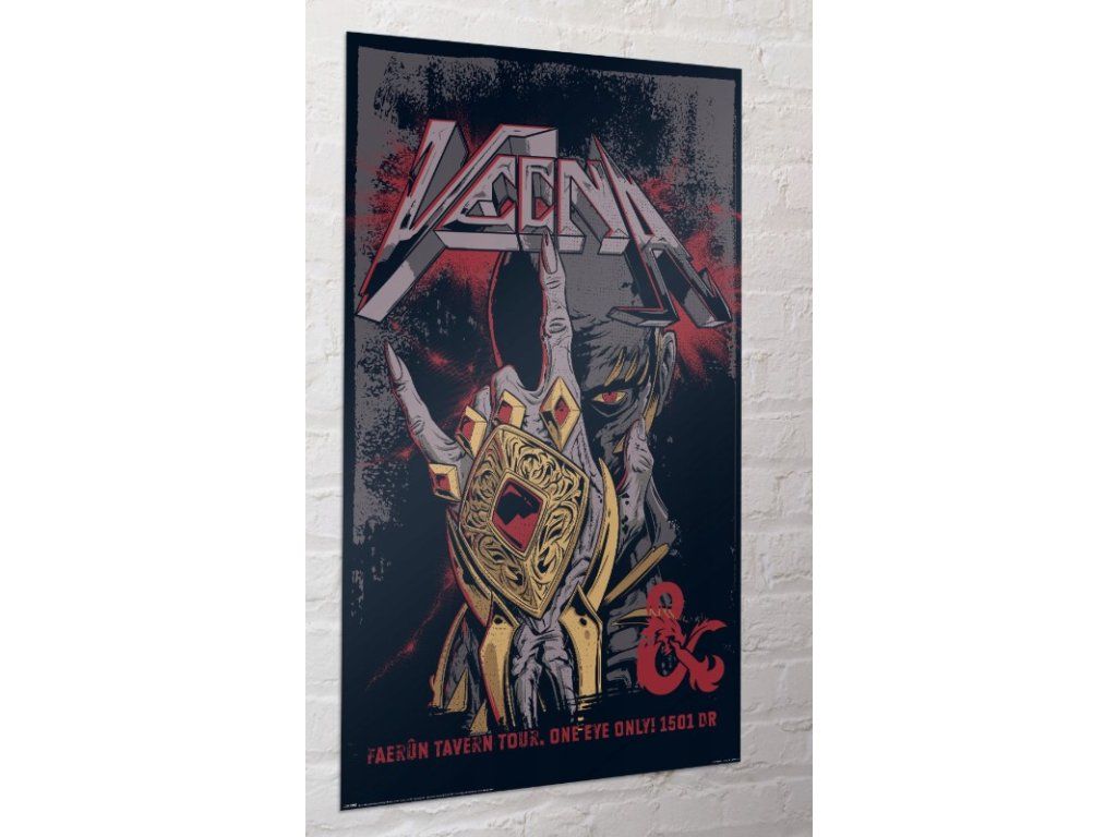 Tento unikátní plakát zachycuje arcimága Vecnu v exkluzivním designu inspirovaném rockovými tour plakáty. Zapomeňte na klasické portréty - toto je vizuální pozvánka na temnou jízdu napříč sférami. Jméno "VECNA" v horní části je vyvedeno v agresivním, ostře řezaném 3D fontu, který podtrhuje jeho nekompromisní moc. Perfektní volba nad váš stůl pro hraní, do herního doupěte nebo jako výrazný prvek do obývacího pokoje každého fanouška fantasy.