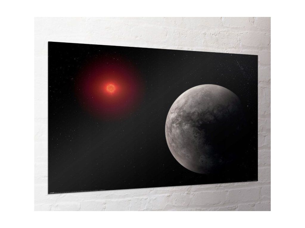Přeneste se do hlubin vesmíru s tímto úchvatným vizuálem exoplanety. Tato ilustrace vás zavede k cizímu světu, který se koupe v záři svého rudého slunce. Je to dokonalá dekorace pro každého, koho fascinuje moderní astronomie a pátrání po nových domovech lidstva ve hvězdách.