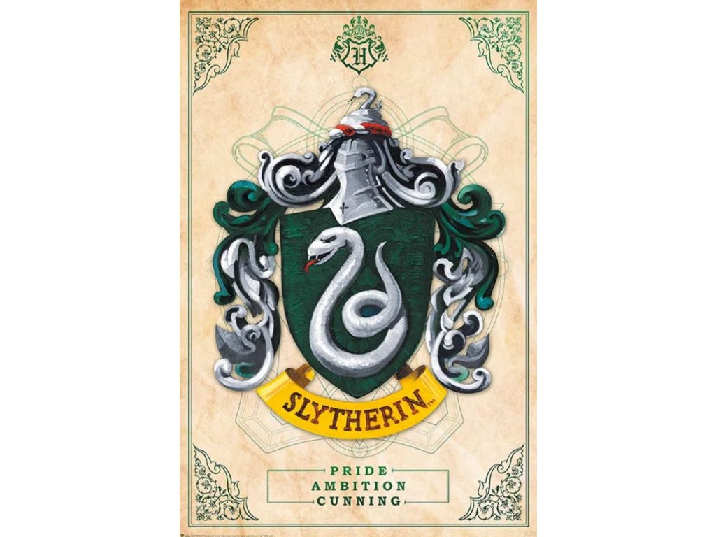 Plakát s erbem Zmijozelu z Harryho Pottera přináší kouzelnou atmosféru koleje odvážných a věrných přátel. Jemné vintage provedení dodává dekoraci styl a zároveň ctí tradici slavné školy čar a kouzel. Skvělý doplněk do pokojíku každého fanouška světa Harryho Pottera.