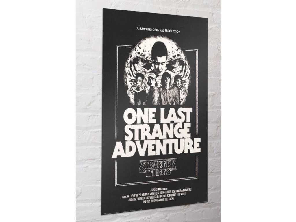 Stylový plakát inspirovaný populárním seriálem Stranger Things přináší temnou retro atmosféru a ikonické postavy v originálním grafickém zpracování. Černobílý design s vintage typografií připomíná klasické filmové plakáty a dodá interiéru jedinečný styl. Na jednom místě máte pohromadě všechny hlavní hrdiny, kteří se stali symboly odvahy a přátelství pro celou jednu generaci fanoušků. Plakát je ideální dekorací do pokoje, herního koutku, pracovny nebo obývacího prostoru. Skvěle se hodí pro fanoušky seriálu, retro stylu a filmové estetiky.