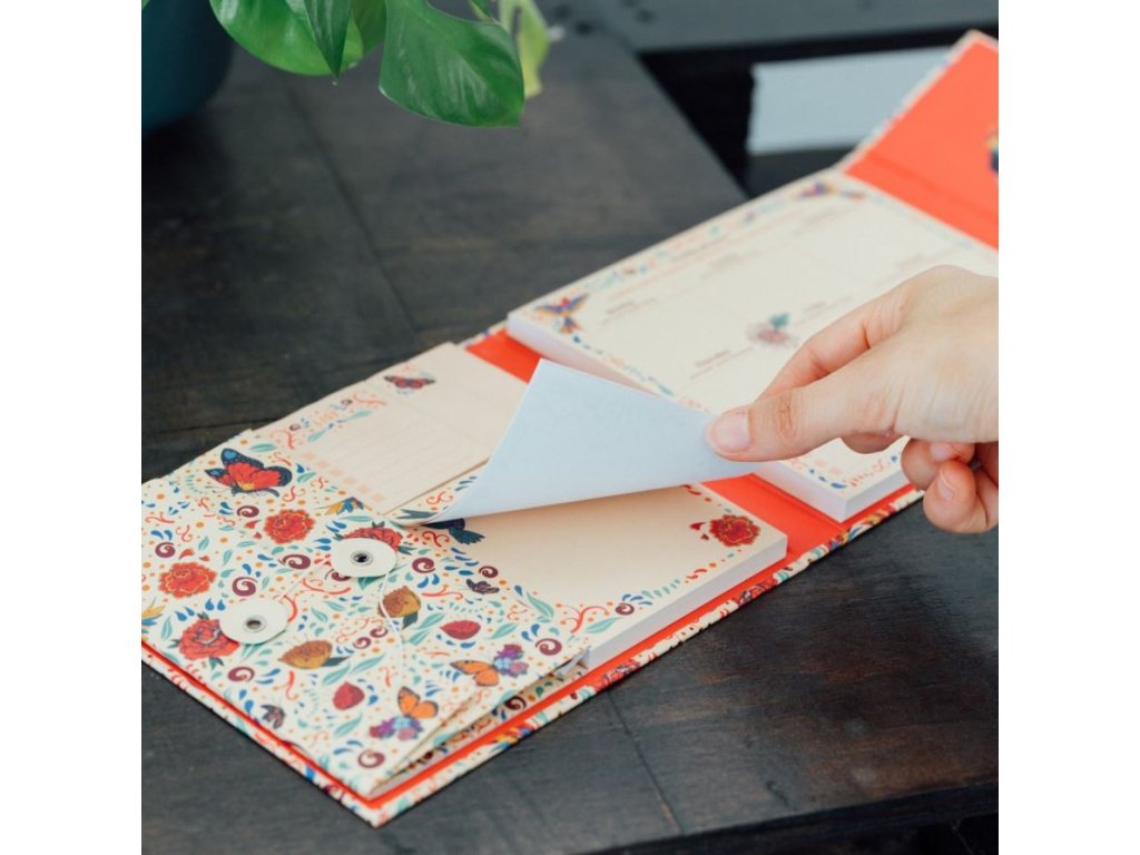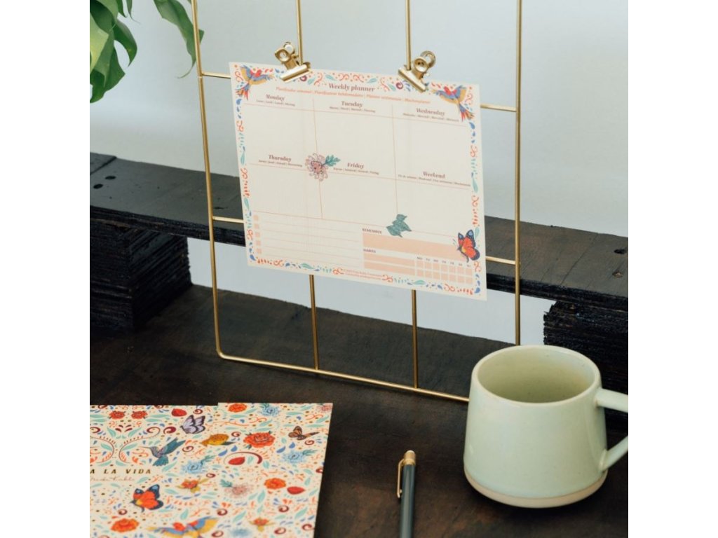 Plánovač inspirovaný malbami umělkyně Fridy Kahlo. Obsahuje týdenní plánovač na vaše osobní i rodinné plánování aktuálního týdne, poznámkový blok pro důležité poznámky či nákupní seznam, blok s lepicími štítky třeba pro rodinné vzkazy, které můžete kdekoliv přilepit a dva bloky s menšími lepicími štítky například pro poznačení důležitých poznámek v bloku. Součástí je i obálka, která je bezpečně uzavřená provázkem. Pro snadné použití knihy je zapínání na magnet.