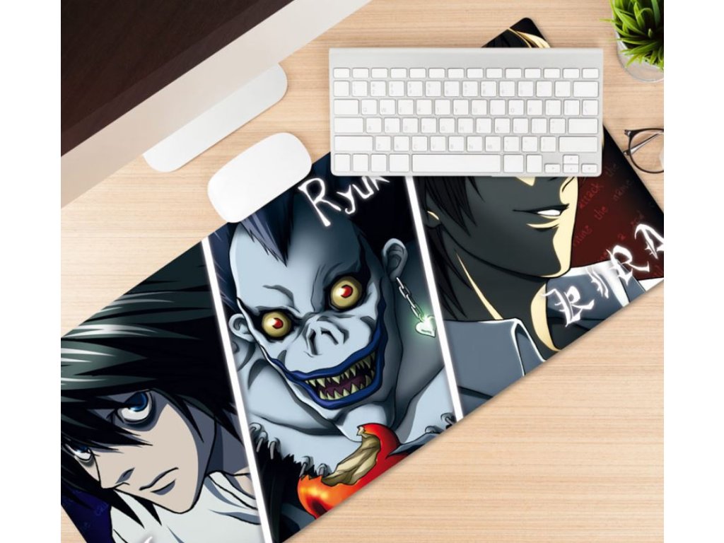 Tato herní podložka s motivy z anime Death Note přináší temnou a napínavou atmosféru přímo na váš stůl. Vyobrazení hlavních postav jako jsou Light, Ryuk a L dodává podložce jedinečný charakter. Součástí je protiskluzová gumová základna a dvojitě prošité okraje odolné proti třepení.