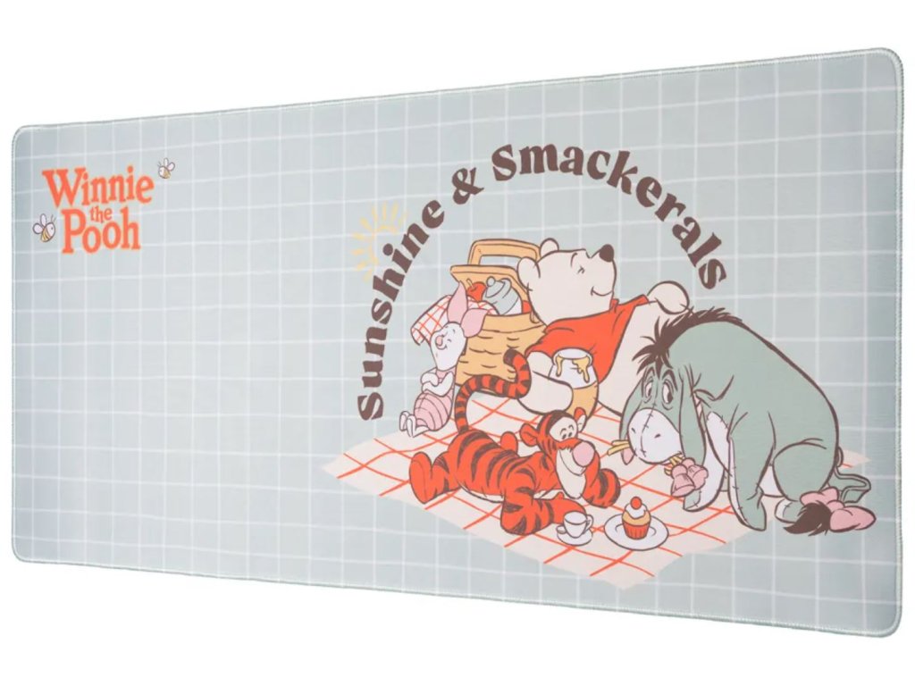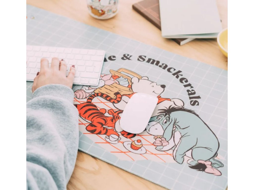 Oficiální produkt - herní podložka na stůl z katalogu kancelářského a počítačového zboží s logem, fotografiemi a grafikou populární pohádky Winnie the Pooh (Medvídek Pů) od společnosti Disney.