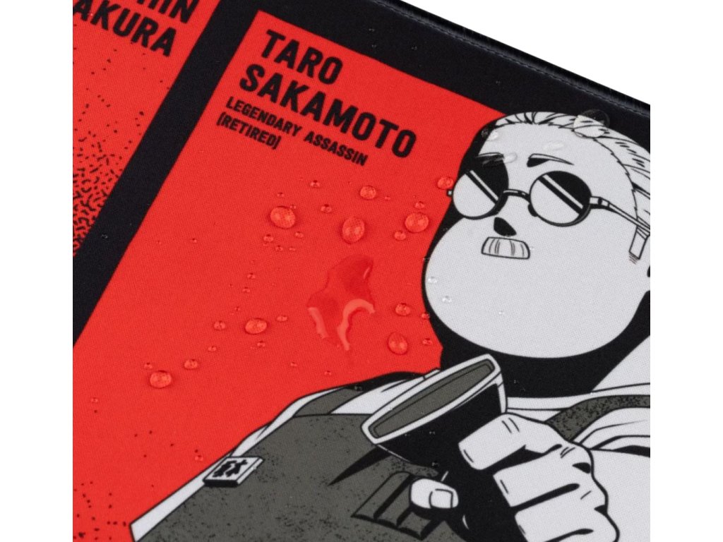 Herní podložka na stůl s grafikou z postav z japonské mangy Sakamoto Days. Textilní povrch s vysokou hustotou, optimální pro intenzivní a přesné používání s jakýmkoli typem myši. Podložka je voděodolná, má zesílené okraje a protiskluzovou gumovou základnu. Podložka je vhodná taky pro ochranu povrchu stolů či lavic.