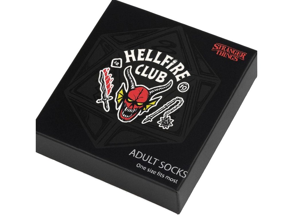 Set tří párů vysokých ponožek v designu Stranger Things potěší každého fanouška tohoto kultovního seriálu. Všechny ponožky zdobí logo Hellfire Clubu. Ideální jako dárek nebo sběratelský kousek. Zabaleno v dárkové krabičce.