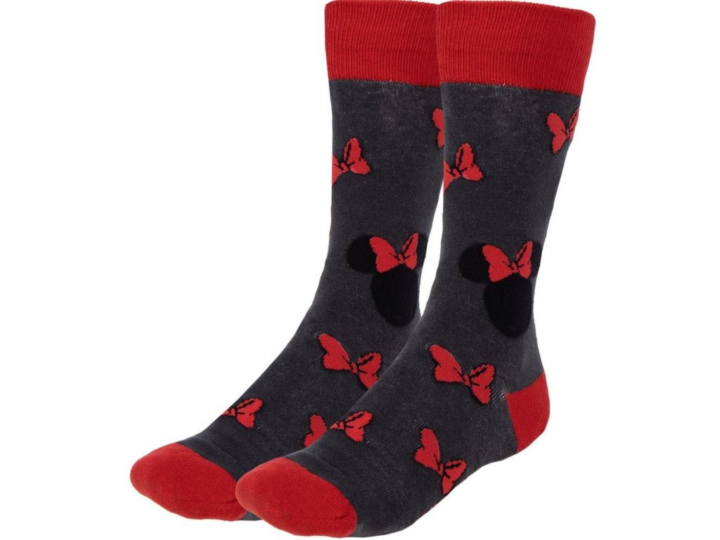 Dárkový set 3 párů atraktivních dámských červeno-šedých ponožek s motivem kreslené postavičky Minnie Mouse. Ponožky jsou vhodným doplňkem každého velkého fanouška této postavy a rozhodně ozvláštní váš každodenní outfit.