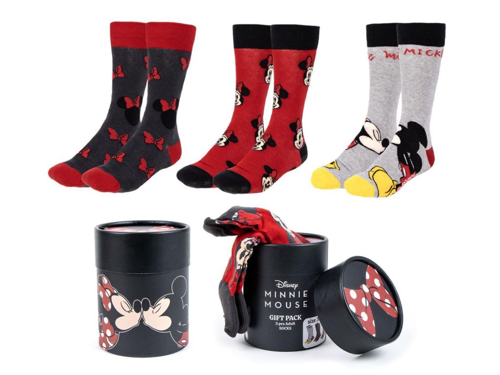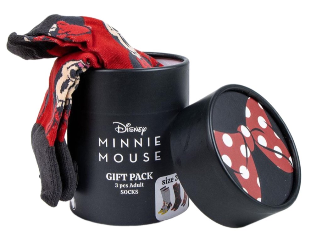 Oficiální produkt - dárkový set dámských ponožek a doplňkového zboží z katalogu produktů s grafikou, motivem a licencí populární postavy Minnie Mouse z kreslené pohádky Mickey Mouse od společnosti Disney.