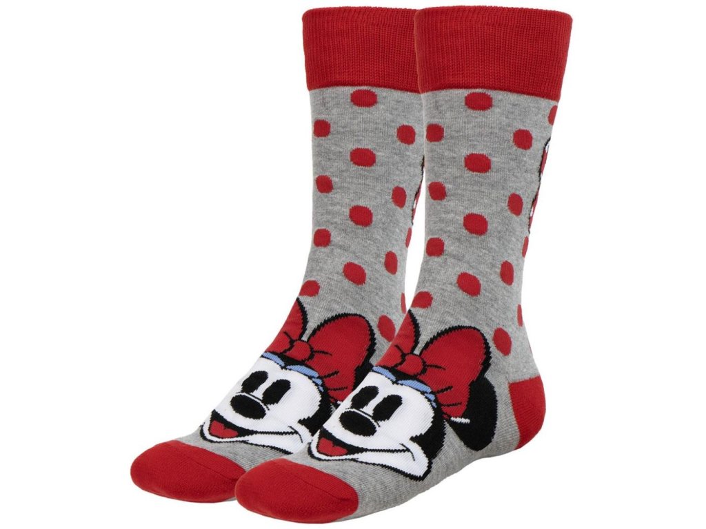 Dárkový set 3 párů atraktivních dámských červeno-šedých ponožek s motivem kreslené postavičky Minnie Mouse. Ponožky jsou vhodným doplňkem každého velkého fanouška této postavy a rozhodně ozvláštní váš každodenní outfit.