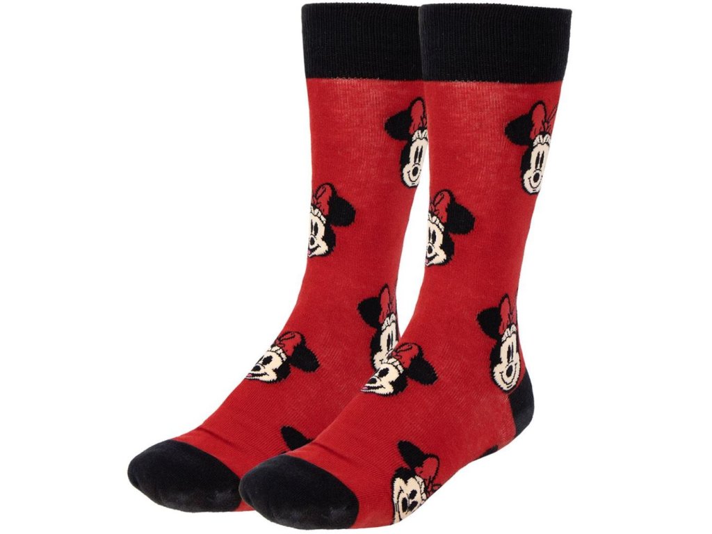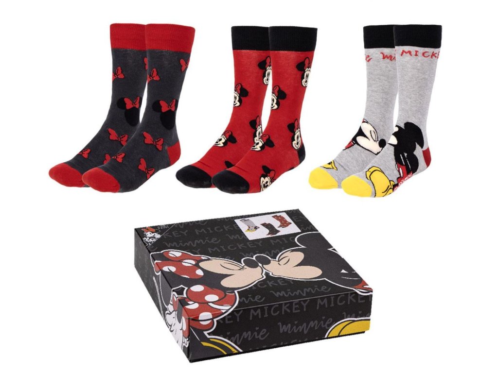 Dárkový set 3 párů atraktivních dámských červeno-šedých ponožek s motivem kreslené postavičky Minnie Mouse. Ponožky jsou vhodným doplňkem každého velkého fanouška této postavy a rozhodně ozvláštní váš každodenní outfit.