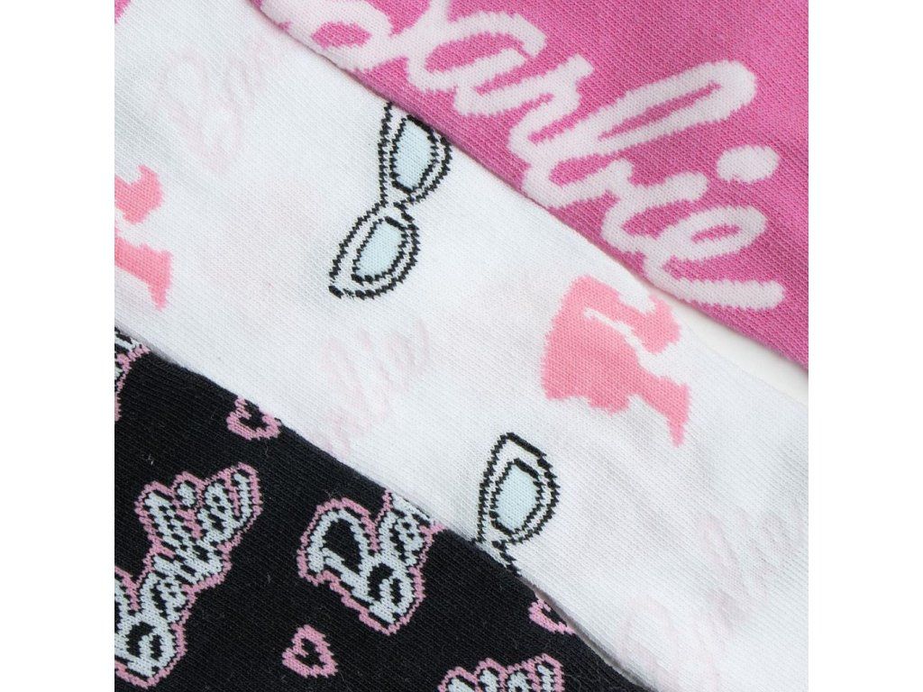 Oficiální produkt - dětské ponožky set 3 párů z katalogu výrobků s grafikou a licencí populárních panenek Barbie od Mattel.