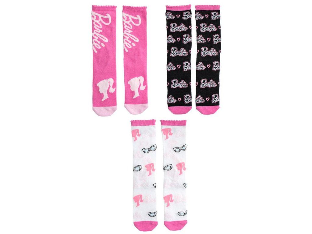 PONOŽKY DĚTSKÉ|SET 3 PÁRŮ MATTEL|BARBIE