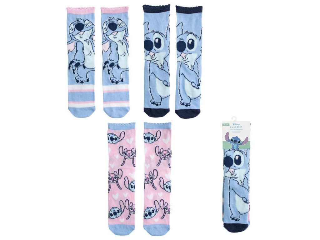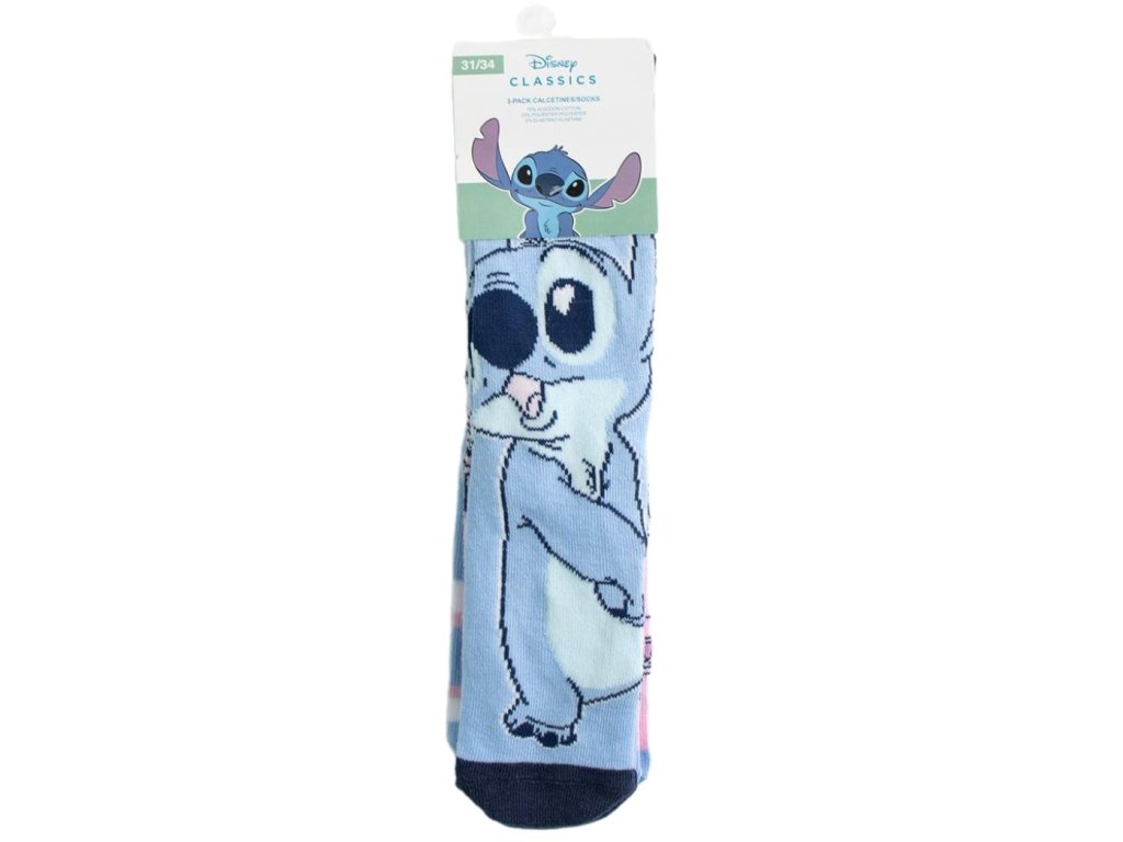 Oficiální produkt - set dětských ponožek z doplňkového a fashion zboží z katalogu produktů s logem, grafikou a fotografiemi animovaného filmu Lilo & Stitch od společnosti Disney.